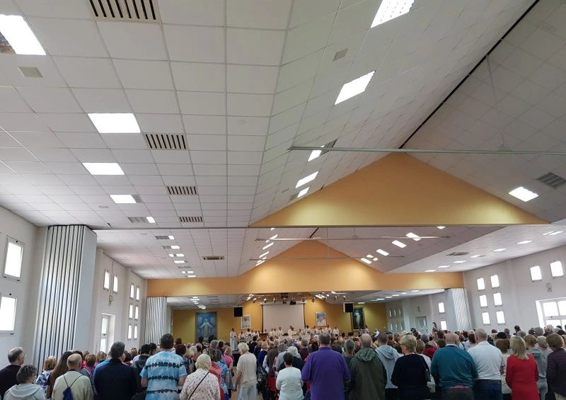 주일 오후 12시 영어미사가 드려지고 있는 강당의 모습