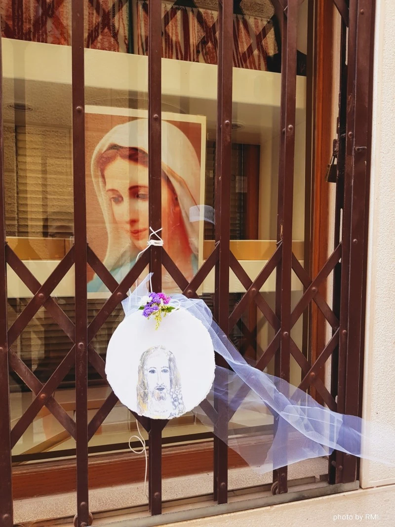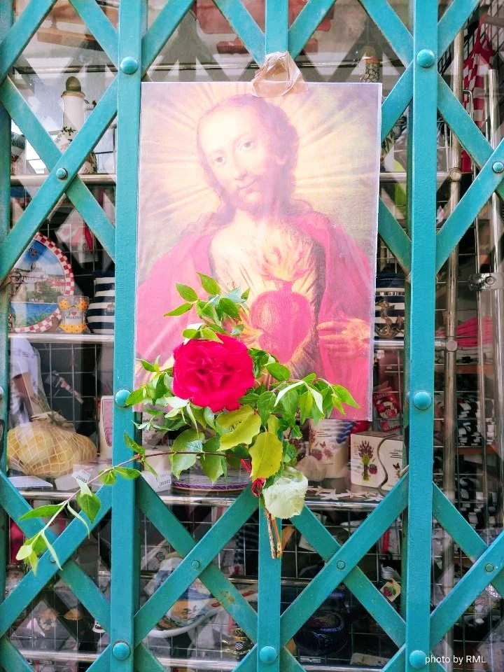 좁은 거리마다 상점들이 즐비하게 서 있었다. 그런데 문마다 처음 보는 예쁜 장식들이 달려 있었다. 가까이 가서 보니 예수님, 성모님 성화에 장식을 달거나 아니면 동그랗게 오려서 스티로폼에 붙여 꽃과 길고 얇은 흰색 천를 달았다. 어떤 곳에는 초도 함께 놓여 있었다. 상점에, 거리의 벽에 붙어 있는 장식들이 가는 길마다 있어 신기하면서도 궁금했다. '이 동네는 원래 이런 장식들을 해놓나?', '아니면, 무슨 날인가...?' 호기심 가득한 추측들을 하나씩 늘어놓으며 걸었다.