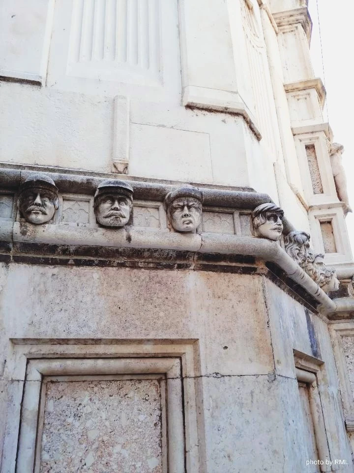 그래서 미사 시간을 물어보니 원래는 저녁 8시인데, 오늘만 7시에 한다고 했다. 알려줘서 고맙다고 인사를 한 후에 성당 뒤쪽으로 걸어갔다. 건물 측면에는 다양한 표정의 시베니크 사람들의 얼굴이 조각되어 있어 하나하나 그 모습이 꽤 인상적이었다.