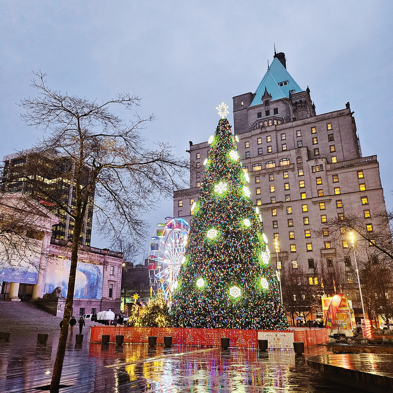 높은 빌딩들이 촘촘하게 모여있고, 그 사이사이로 작은 주택들이 있었다. 창가엔 부드러운 노란빛 조명이, 벽을 타고 올라가는 산타 장식 그리고 집 문 앞에 성대하게 서 있는 사탕지팡이, 크리스마스를 기다리는 마음만큼은 아이와 같았다.