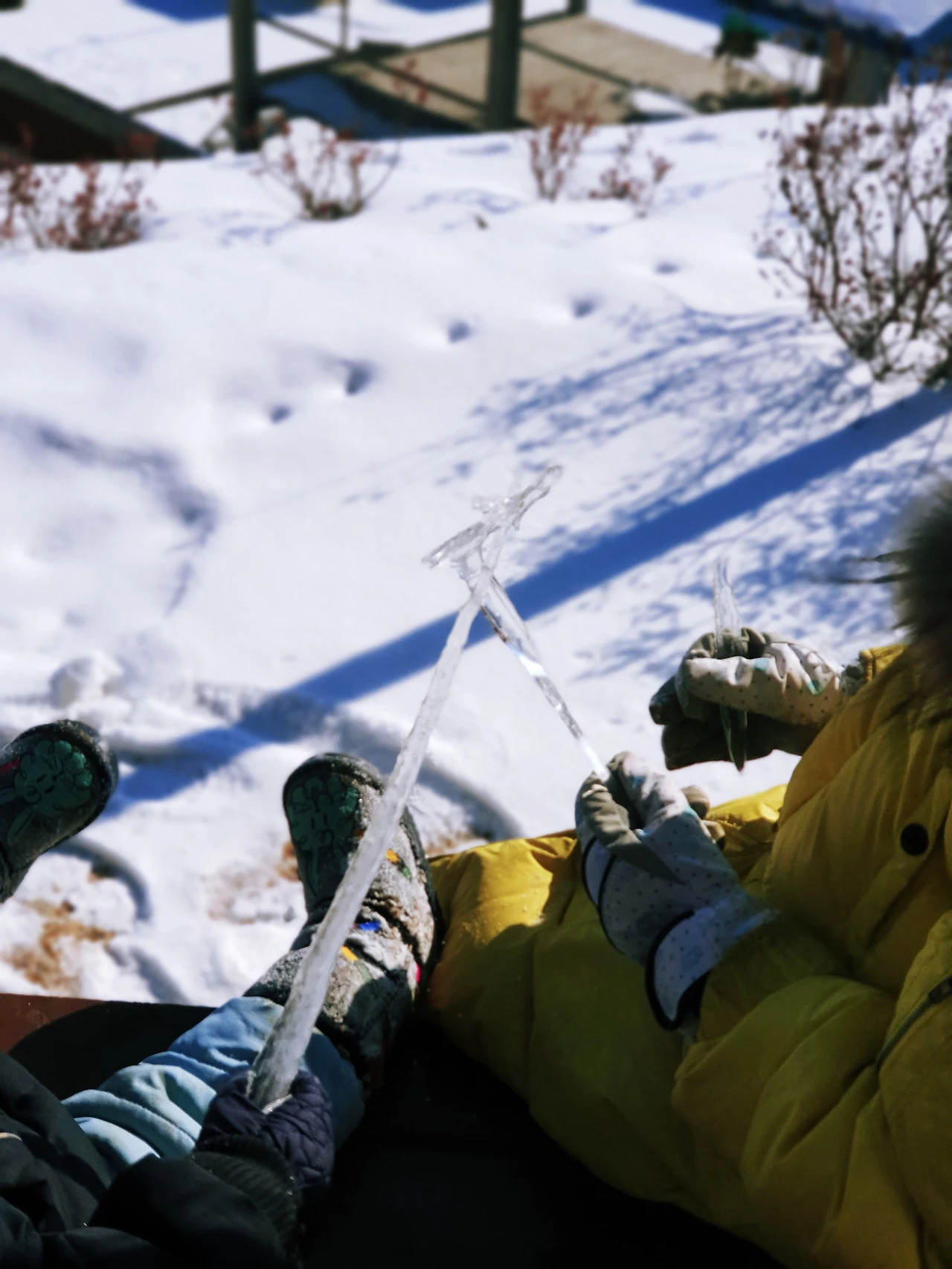 눈과 더불어 아이들의 겨울 장난감이 되어주는 고드름도 실컷 보았어요.