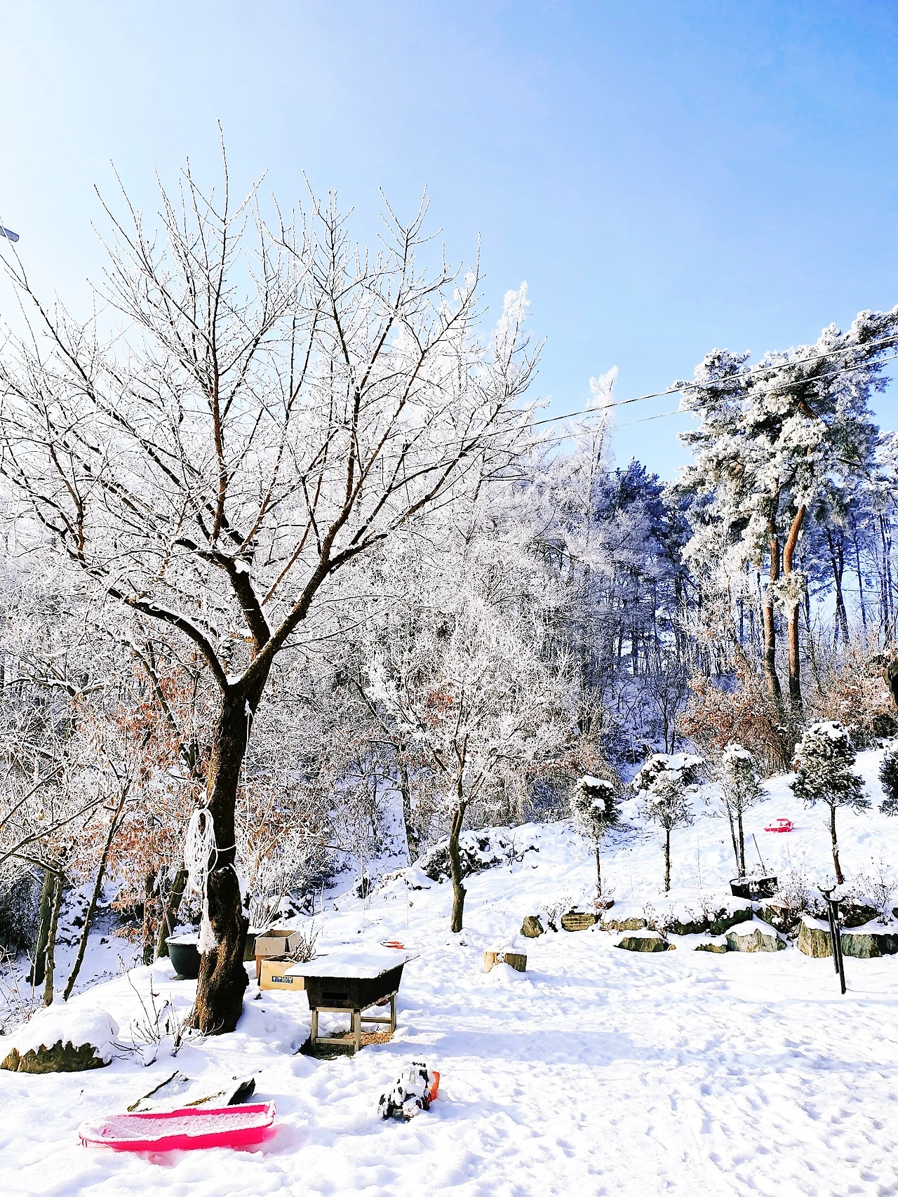 계절마다 여러 색으로 멋진 풍경을 만들어 주는 나무들덕에 겨울에도 설경을 바라보며 힐링을 했습니다.