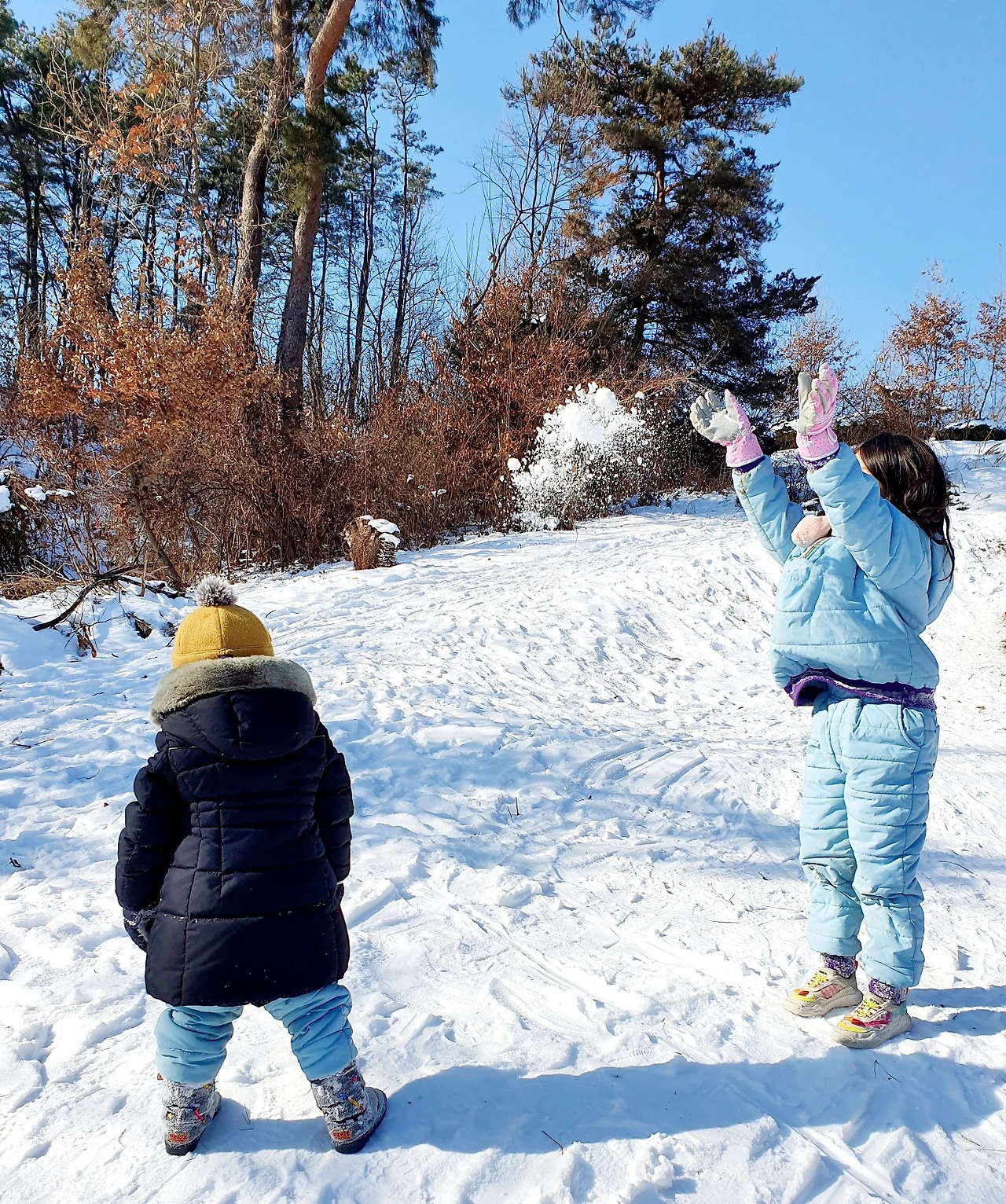 아파트에서는 나가자, 하는 순간 밖을 보면 이미 언니 오빠들이 신나게 놀고 있어서 원하는대로 눈과 함께 놀지 못했던 적이 많았거든요.