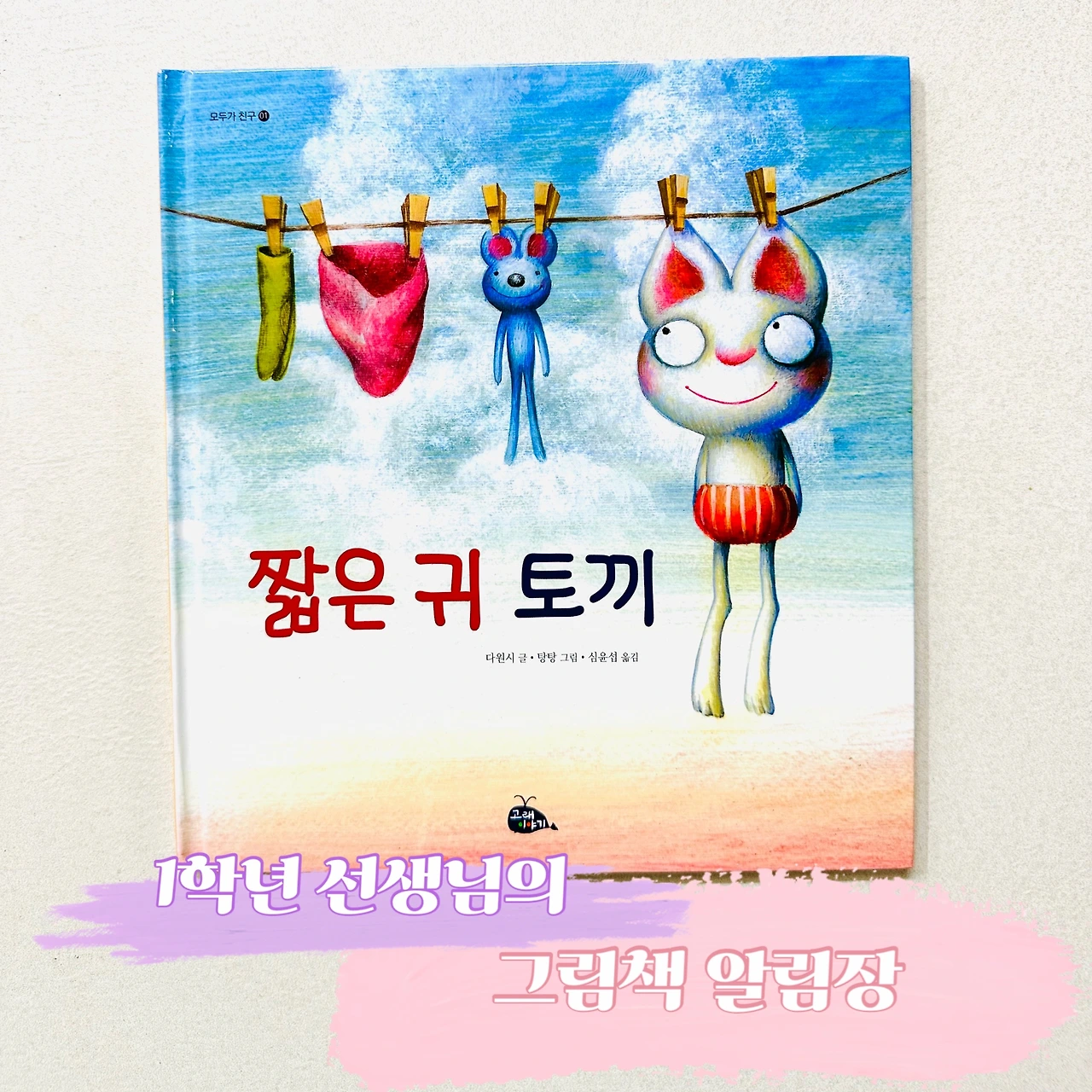 오늘은 <짧은 귀 토끼>를 읽어 주고, 아이들과 생각을 나누어 보았습니다. 표지에 빨랫줄에 걸린 토끼를 보며 아이들은 <도깨비를 빨아 버린 우리 엄마>를 떠올리며 재미있어 하더라고요. 오늘 처음으로 대만 작가의 그림책을 소개했는데, 이 그림책은 자신의 외모 콤플렉스에 대해 생각해 보게 하는 그림책이랍니다.