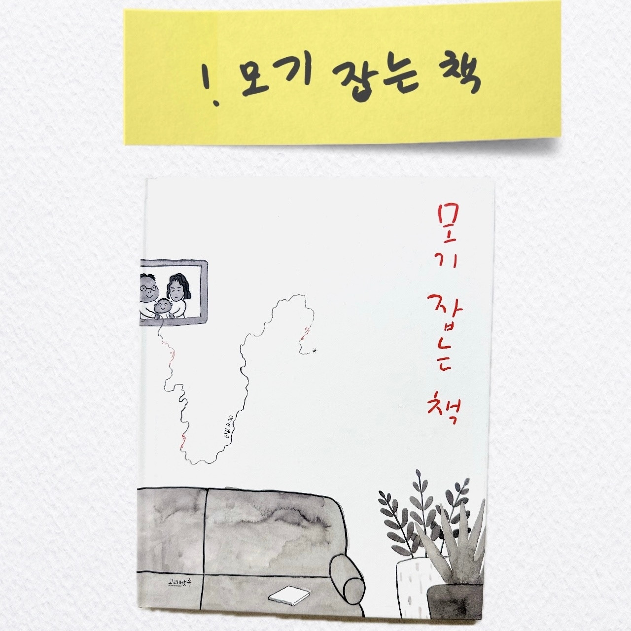 1. 모기 잡는 책_ 특히 여름에 모두 공감할만한 그림책인데, 모기 한 마리가 잡히지 않는 상황을 먹의 농담, 빨간색만 사용한 단순한 채색으로 익살스럽게 표현했어요. 모기를 못 잡아 쿵쾅대는 가족들 소리에 아랫집 할아버지, 옆집 과학자, 아랫집 관장님까지 등장해서 각자의 논리를 펼치는 것도 재미있답니다!