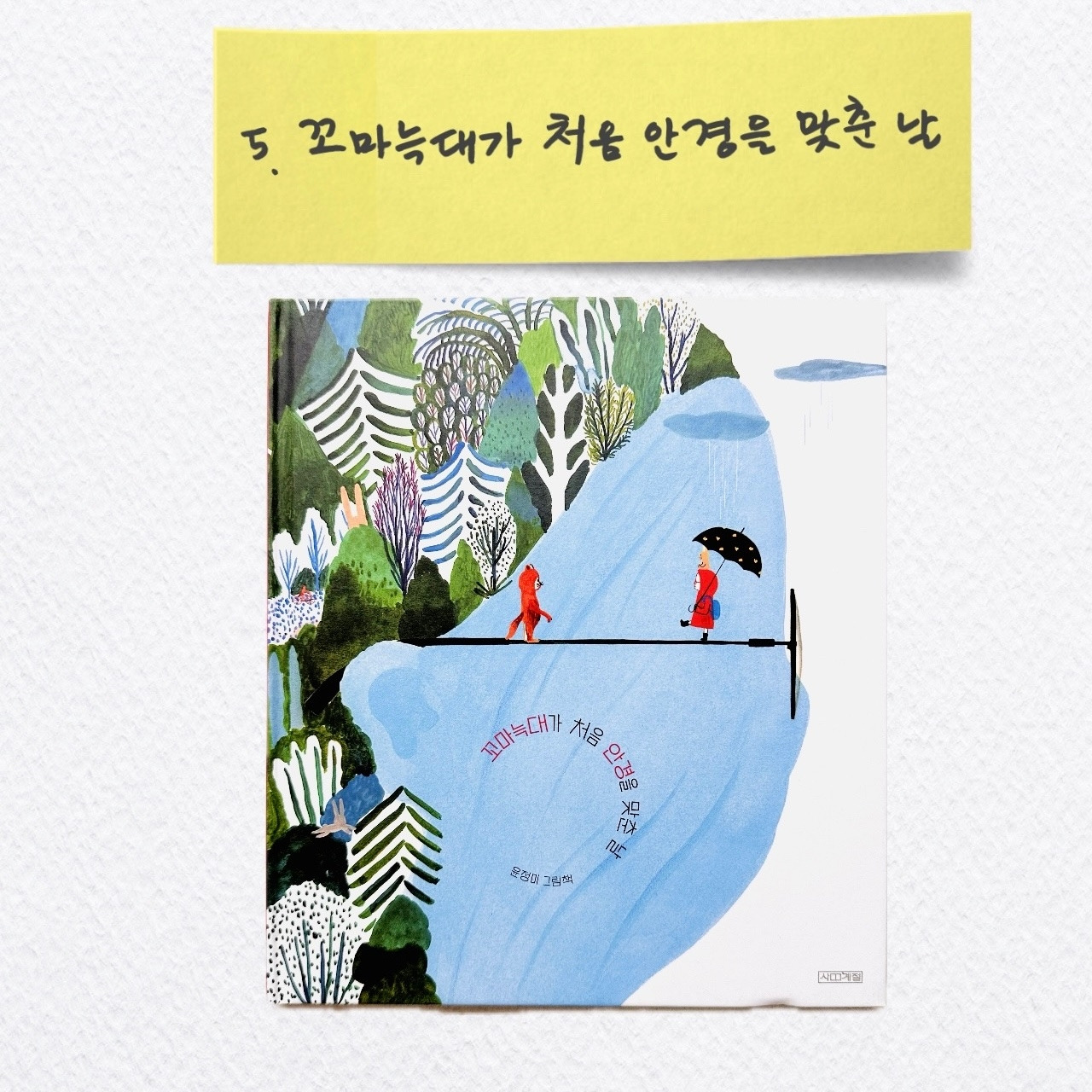 5. 꼬마늑대가 처음 안경을 맞춘 날_ 이 그림책은 2024년 대한민국 그림책상 논픽션 대상 수상작이랍니다. 저도 안경을 쓰고 있는데, 처음으로 안경을 쓸 때 궁금했던 모든 것들이 담겨 있지요. 흥미롭게 안경에 대한 이야기가 펼쳐지며 정보를 담고 있는데, 그림을 가까이에서 볼 때와 멀리서 볼 때 다른 그림을 담고 있어 신기하지요. 안경을 막 쓰기 시작한 친구들, 안경에 대해 알고 싶은 친구들이 보면 좋을 그림책이랍니다.