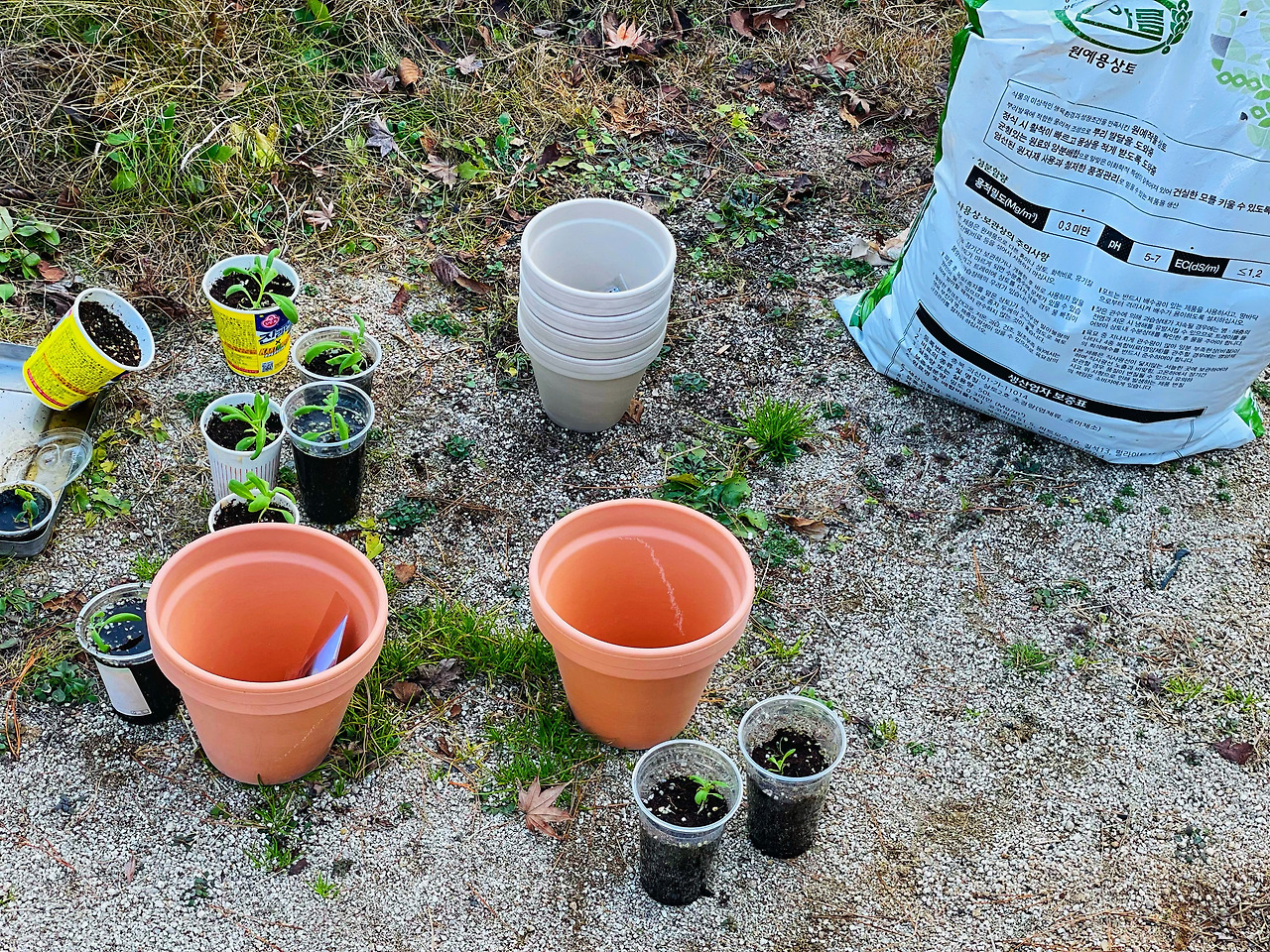 그런데 이제 그 재활용 화분들도 작아져 버렸습니다.
