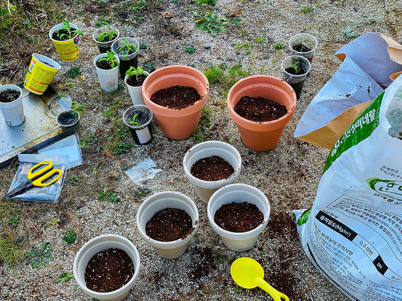 집에 가지고 있던 원예용 상토도 꺼내오고,