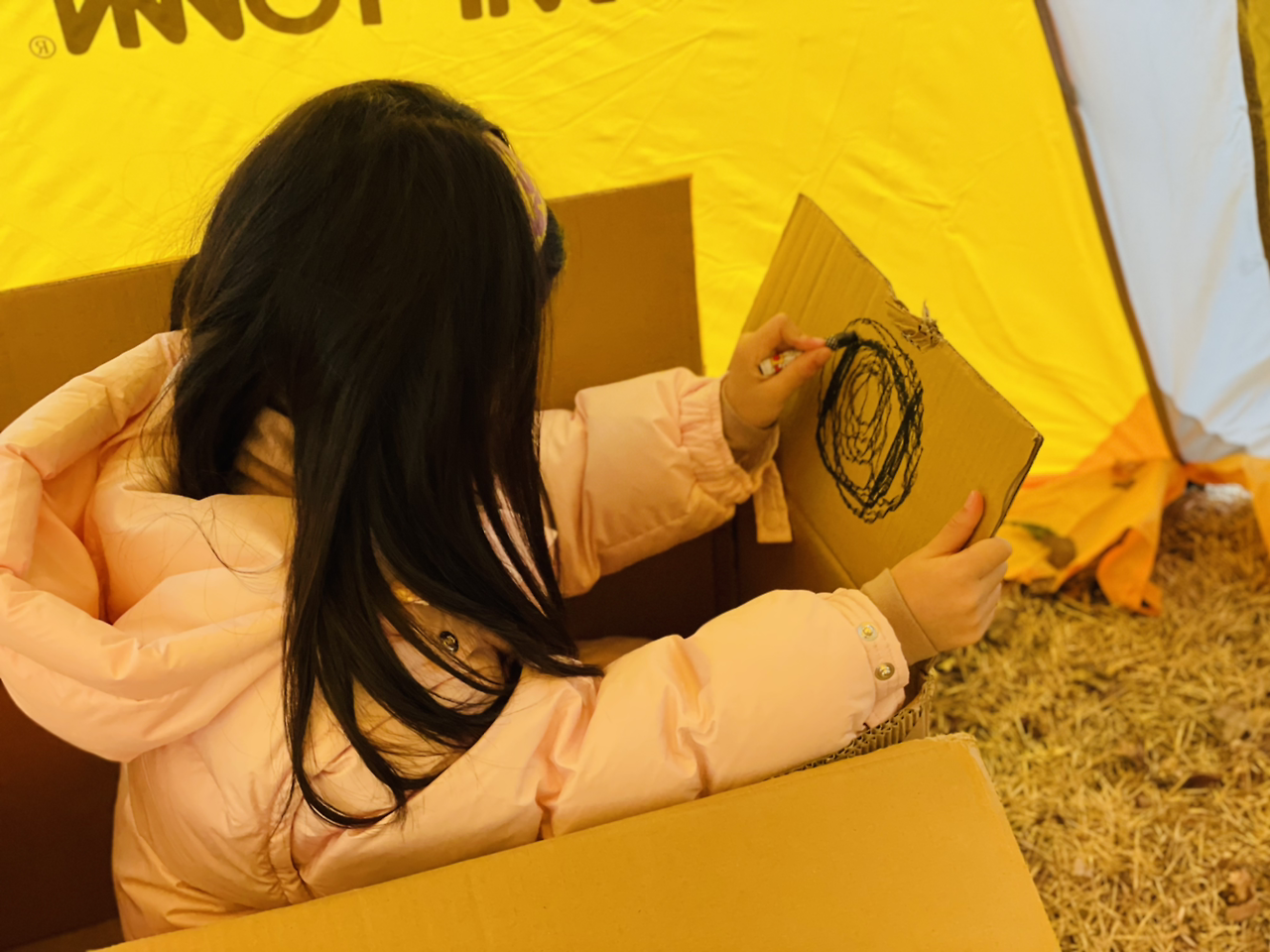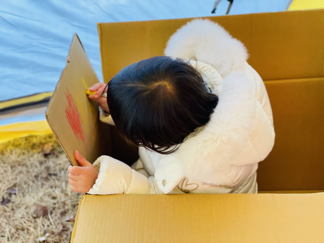 아이들은 빈 박스만 있어도 신나게 놀았습니다.
