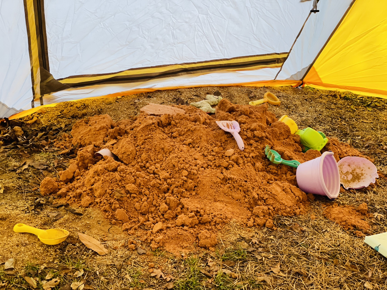 몇 달전에 사 둔 황토 포대 세 자루를 한 쪽에 뿌렸습니다. 강의를 통해 아이들이 흙놀이만 해도, 건강에 좋다는 걸 알게되었거든요.