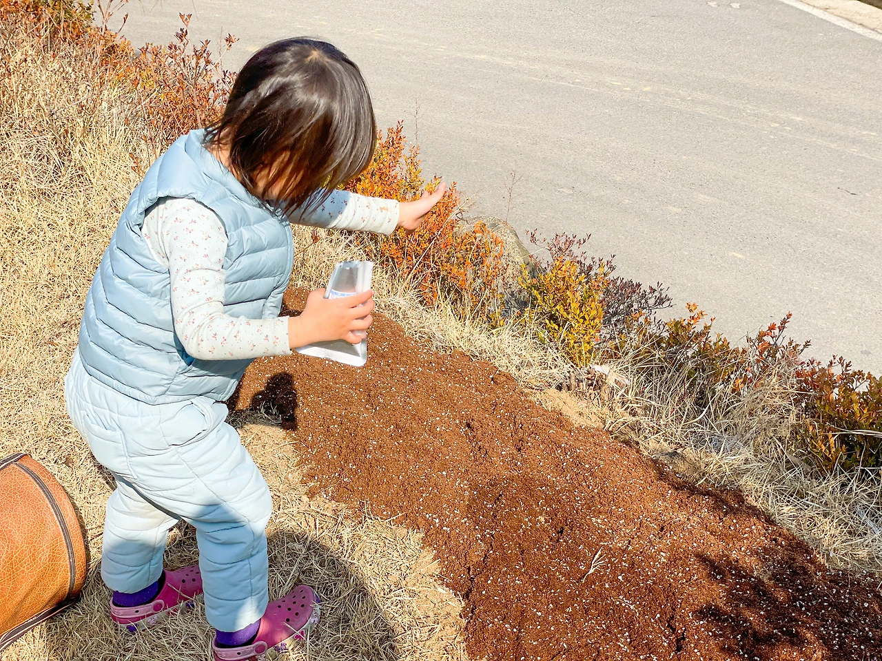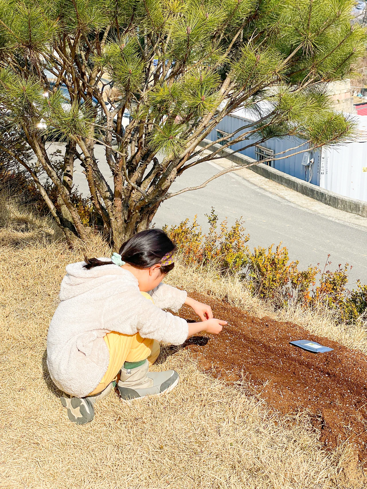 포트에 심지 않고, 노지에 직파할 씨앗들은 아이들을 시켰어요.
