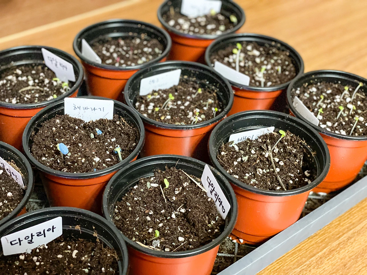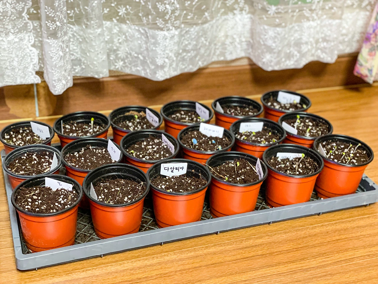 (그런데 오늘 보니까 둘찌 씨앗만 새싹이 쏙 올라왔더라고요. 성공률은 좀 더 지켜봐야겠어요. ㅎㅎㅎ)