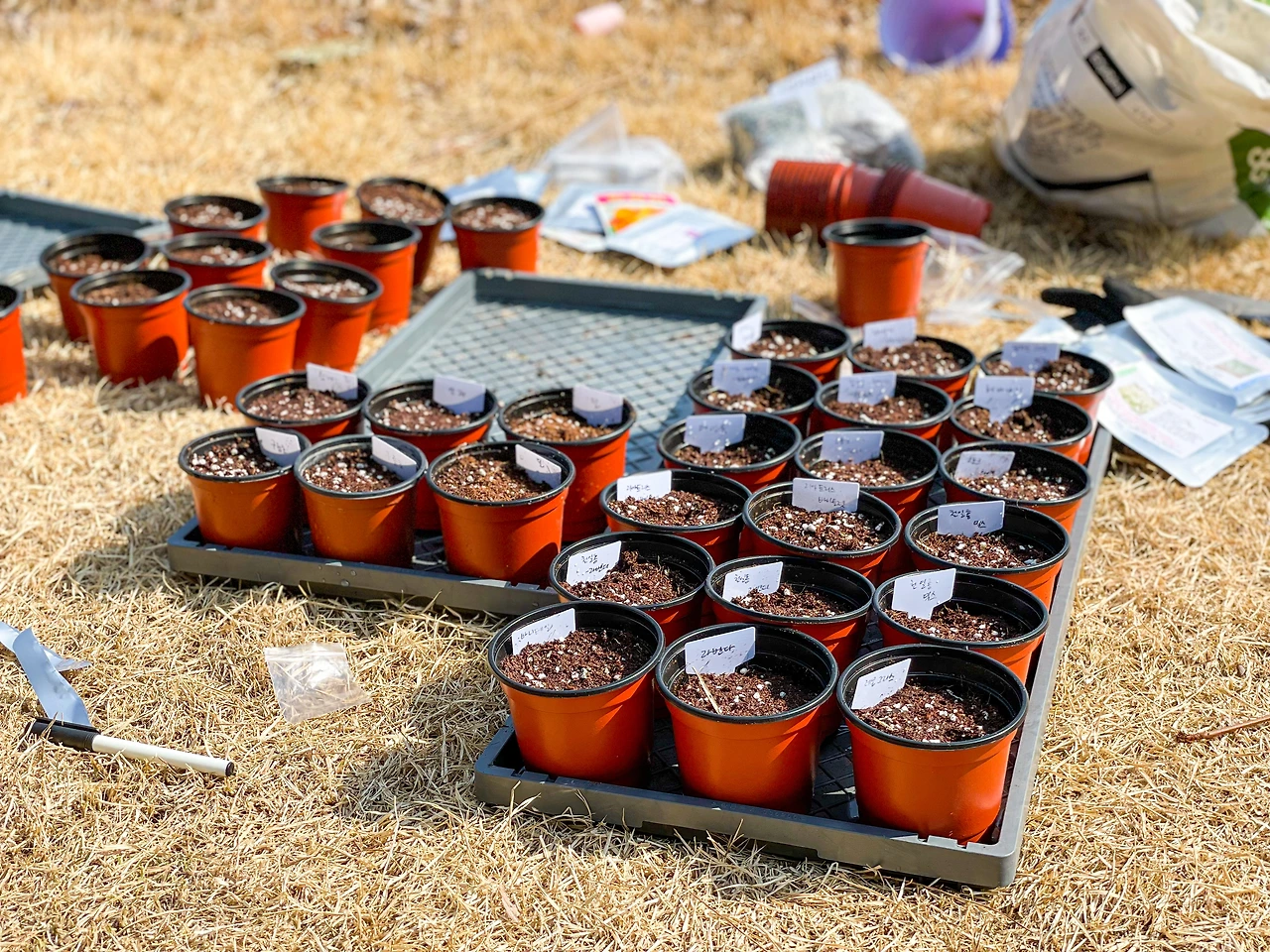 정원 늘리기 작업에 욕심을 쏟으면 오늘 내로 꽃씨를 못 심고 끝날 수도 있기 때문에, 더 하고 싶은 마음을 내려 놓고, 상토와 꽃씨, 그리고 파종할 포트를 옮겨 왔어요.