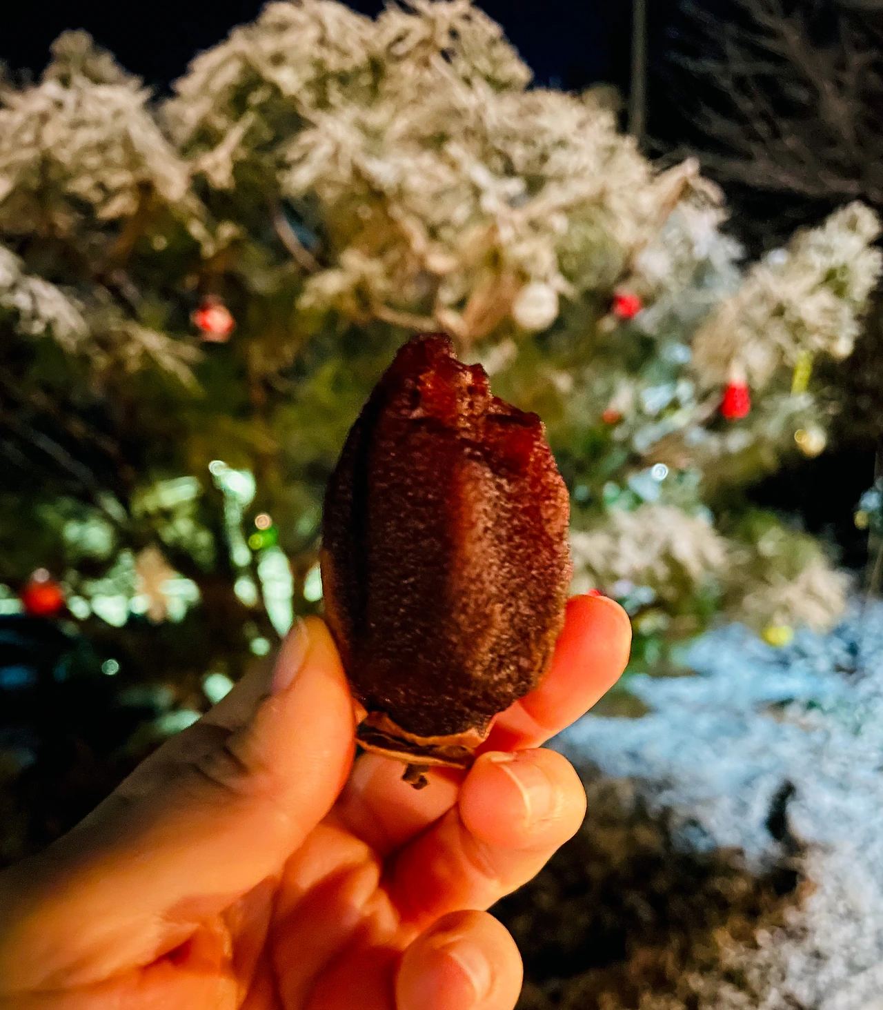 사랑하는 아이들이 눈사람을 만드는 걸 바라보며 먹는 곶감의 맛이란! 이건 겉바속촉이 아니라, '겉쫀득속사르르달콤'이에요. 그간의 수고가 한 방에 녹아내립니다.
