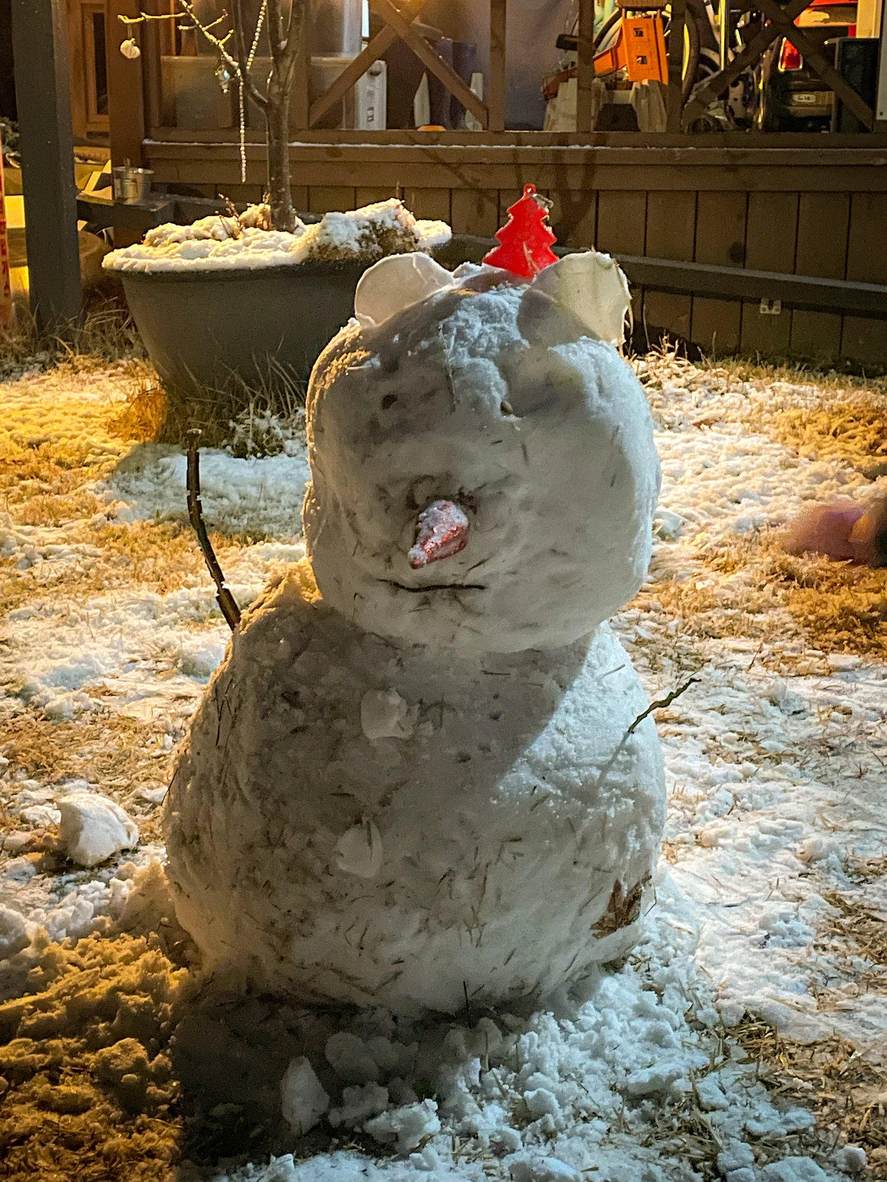 전원주택 3년차, 그동안 아이들이 만든 눈사람 중에 제일 크고 제일 멋진 눈사람이 완성되었네요. 첫 해에는 엄마, 아빠가 함께 눈덩이를 굴려 주었는데, 이제는 둘이서 온전한 눈사람을 만들었습니다. 아이들이 자라고 있음을, 많이 자랐음을 또 한 번 실감하는 저녁입니다.