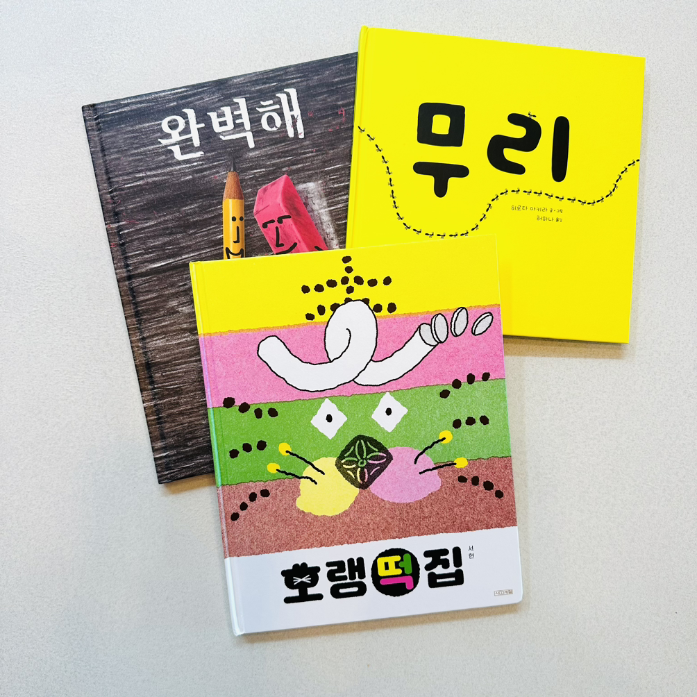 3. 호랭떡집_ 서현작가의 신작! 다양한 떡과 요괴들이 나와 아이들의 시선을 한 방에 사로잡는 책입니다. 특히 숨어있는 서현작가의 지난 그림책 속 캐릭터들을 찾는 것이 숨은 재미 포인트죠! 다양한 요괴의 표정과 약식과 떨어졌다 다시 찾은 밤을 찾는 걸 둘찌는 특히 좋아했어요.