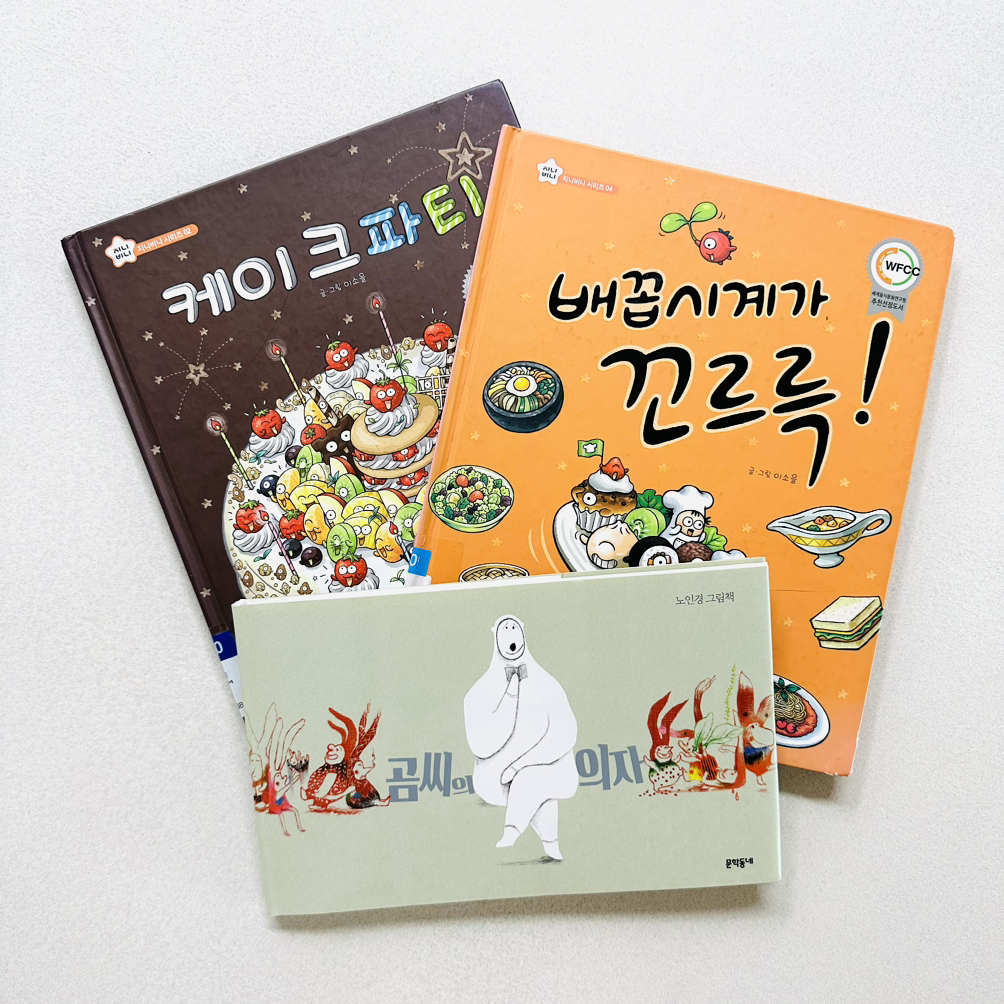 1. 따끈따끈 목욕탕_아주 추운 겨울날, 찰떡친구 찰이와 떡이가 목욕탕에 가서 다양한 탕에 들어간 이야기. 초밥들과 함께 한 간장 족욕탕부터 모둠전골탕까지! 재미있는 에피소드들이 펼쳐집니다. 읽고 나서 둘찌가 “이 책 재미있어.”라고 말한 귀여운 책이예요.