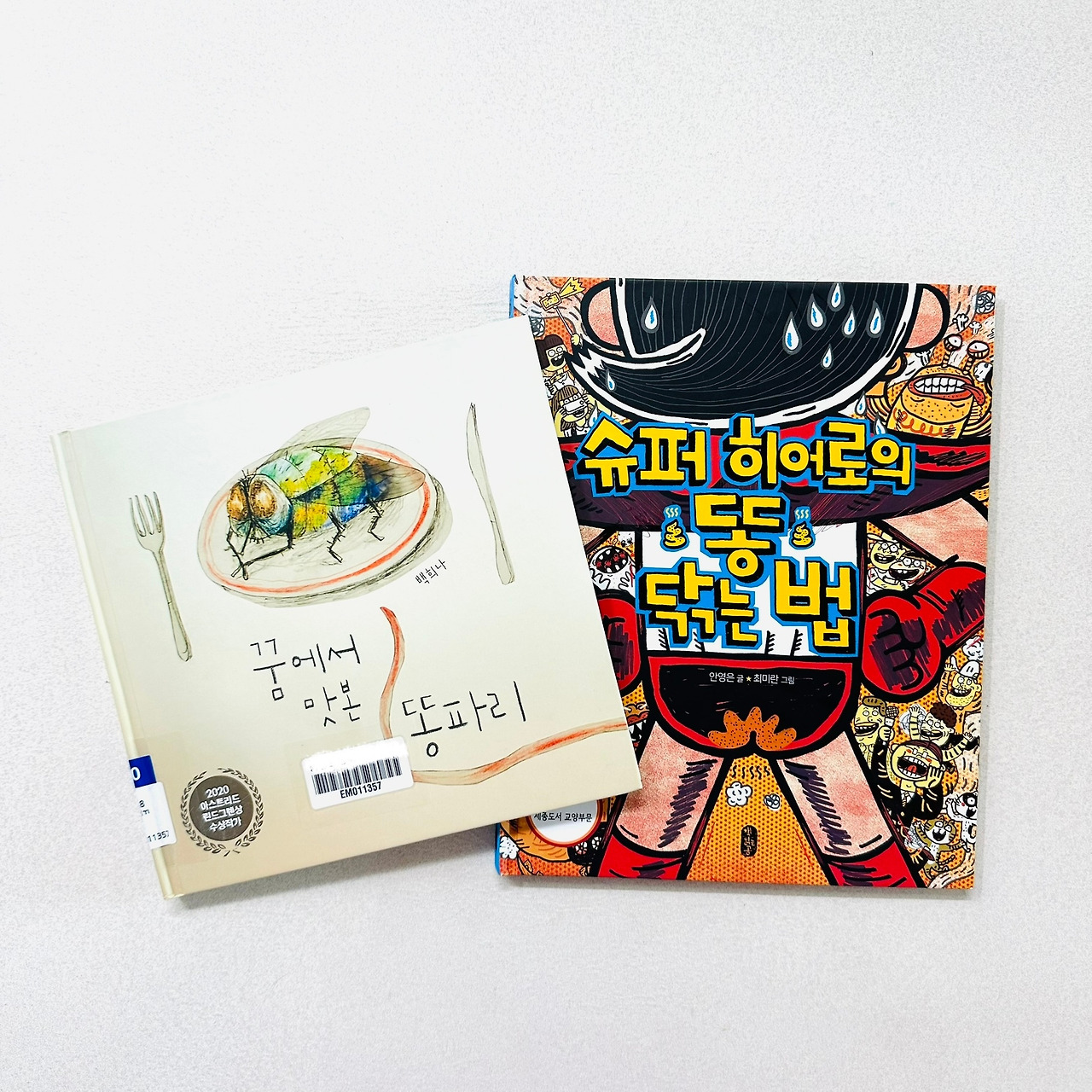 *꿈에서 맛 본 ’똥’파리와 함께 가져온 책이 슈퍼 히어로의 ‘똥’ 닦는 법이라니! 소재를 연관시켰어요. 둘찌가 그냥 막 골라오는 줄 알았는데, 가끔 아닐때가 있어 신기하답니다.
