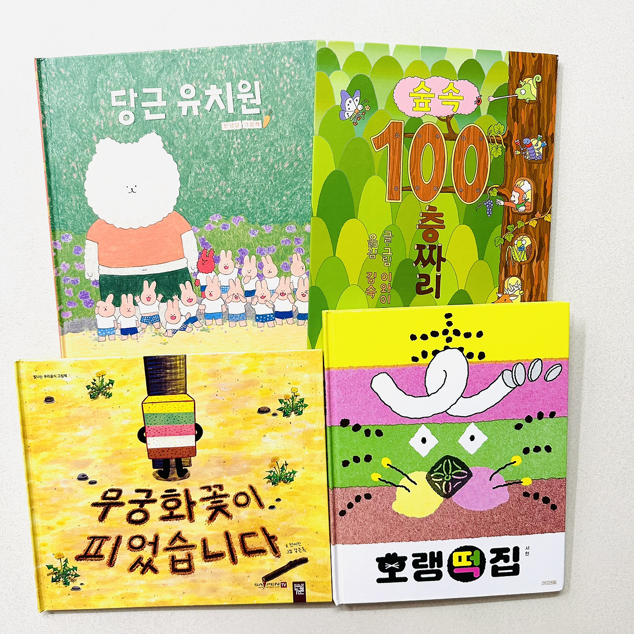 4. 호랭떡집_무궁화 꽃이 피었습니다,에 떡이 나오니까 이 것까지 세트로 읽게 되었어요. 요즘 서현 작가 책 중에는 제일 많이 읽어주는 것 같은데, 볼때마다 숨어있는 서현 작가 캐릭터들이 재미있답니다. 페이지 속 숨어있는 눈물바다, 간질간질, 호라이에 나오는 캐릭터들 찾기라니!