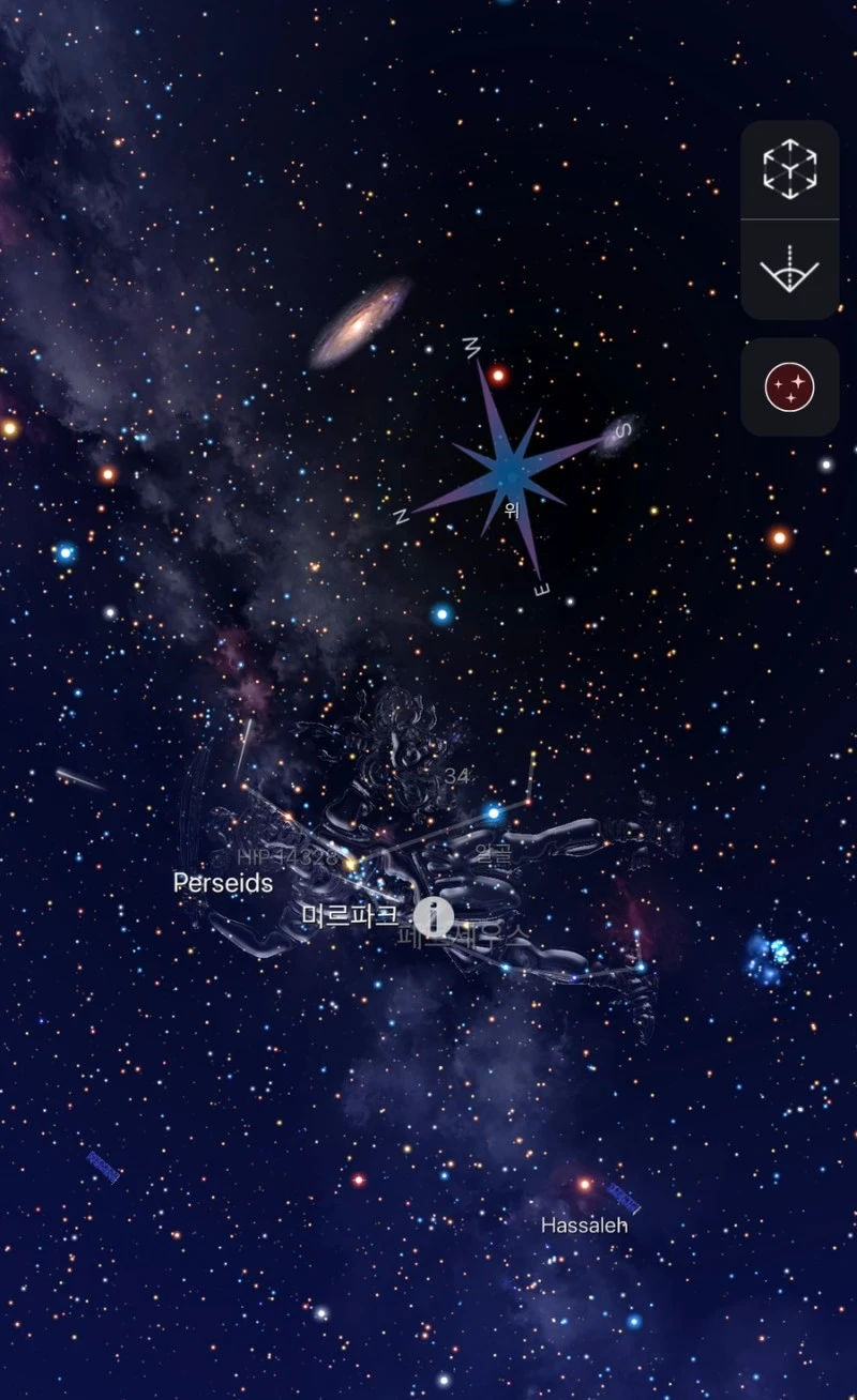 남편이 여기 맞아?, 라고 물어와 휴대폰 속 나이트스카이앱을 켰어요.