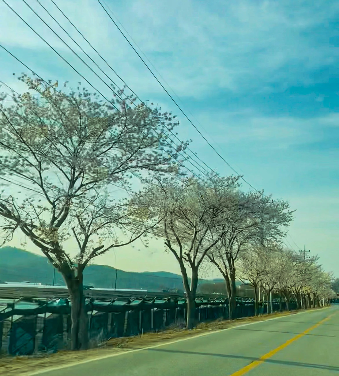 잎이 돋아나는 나무, 꽃이 피어나는 가지, 단풍이 드는 나무, 살랑살랑 흔들리는 코스모스, 그리고 조용히 눈이 쌓이는 논밭의 풍경들… 이런 자연의 변화들을 눈으로 담으며 운전하고 있더라고요.