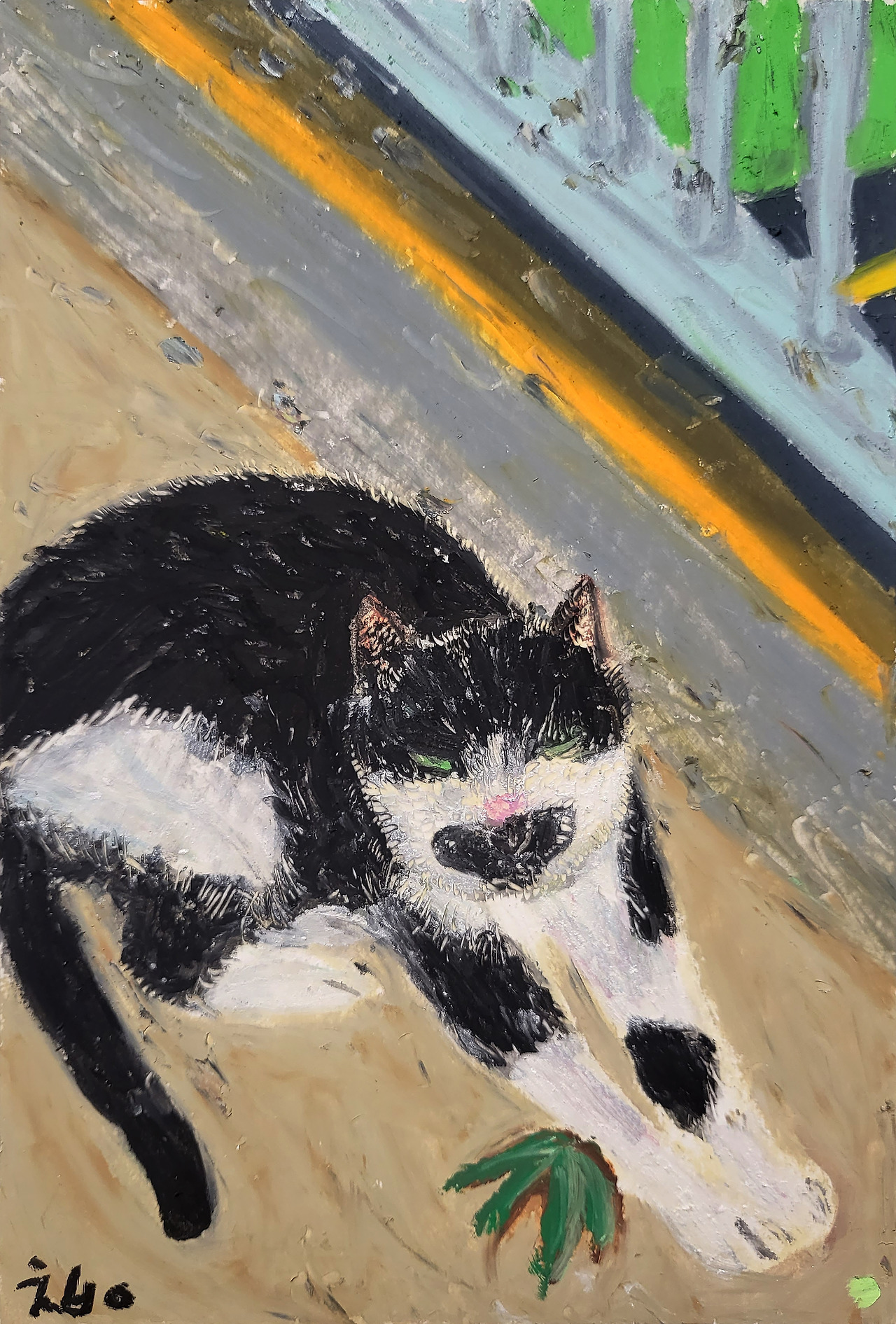 사람이 많이 다니는 길에 앉아 있던 고양이.