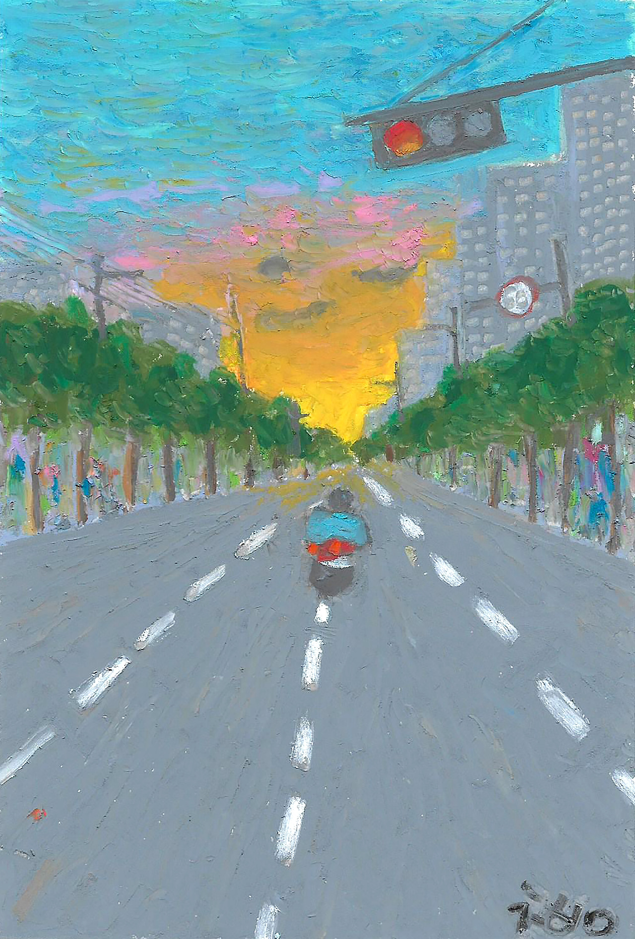 횡단보도를 건너다가 찍은 장면을 그림으로.