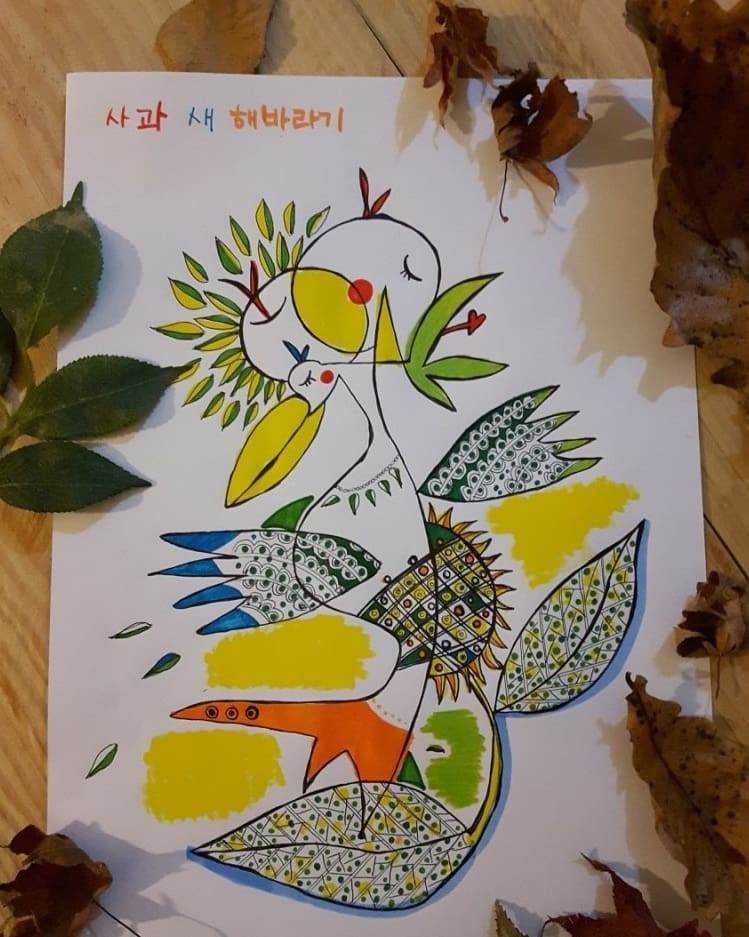 사과 새 해바라기 / apple bird sunflower