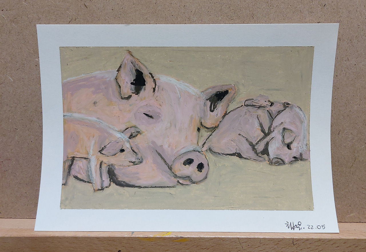 고단해 보이면서도 행복해 보이는 엄마 돼지.