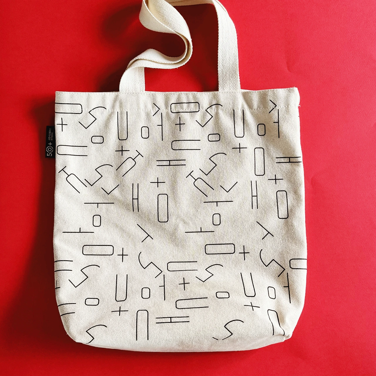 <50플러스재단> 에코백, 행사때 나눠준 가방으로 *소색과 검정, 두가지 버전을 다 가지고 있다. 홍보용 굿즈로 디자인이나 만든 퀄리티가 좋아 받아 두었고 약 3년 정도 잘 사용했다. 이 에코백은 단단한 면으로 되어 있어 가방모양이 잘 잡히는 가방으로 책처럼 무거운 짐을 넣어 다니기 좋다.