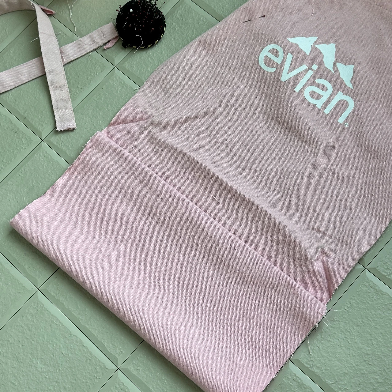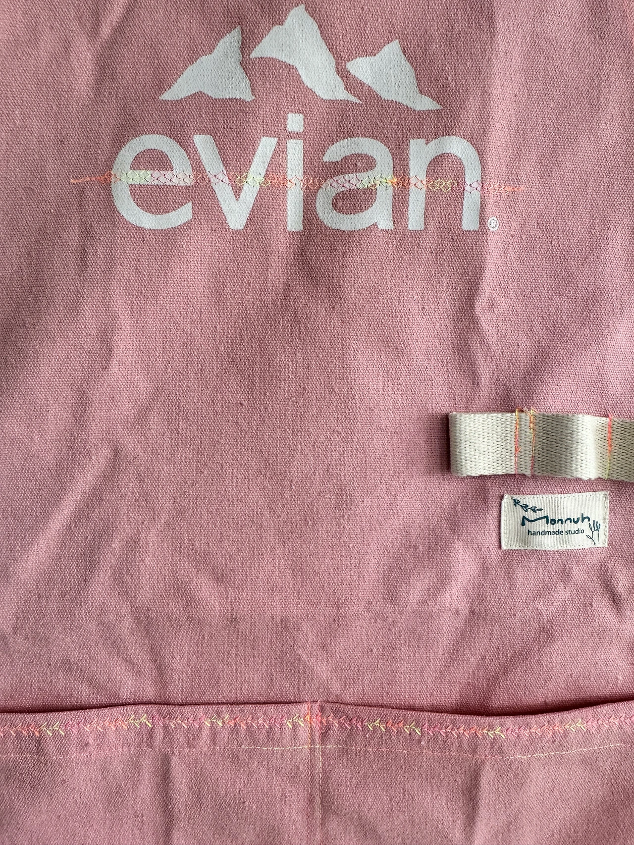인터넷을 찾아보니 물한병사면 에코백을 주는 행사를 했었다는 걸 알게 되었다. 물한병에 에코백하나.. 이 에코백은 에비앙만큼 고급은 아니었다. 안쪽 처리를 보면 잘 만든 것인지 이벤트용으로 싸게 만든 것인지 알 수 있다. 바느질도 내 성에는 차지 않았다. 그저 에비앙의 상징인 핑크색과 에비앙이라는 로고가 필요했을 뿐 에코백은 별 의미 없었나 보다.