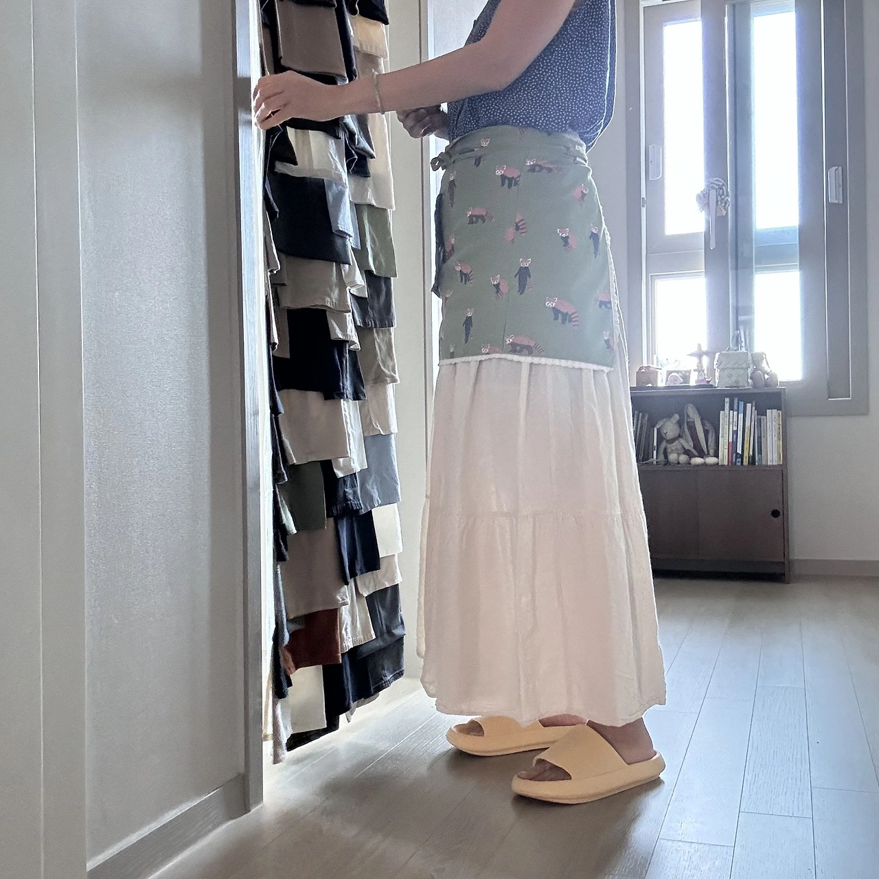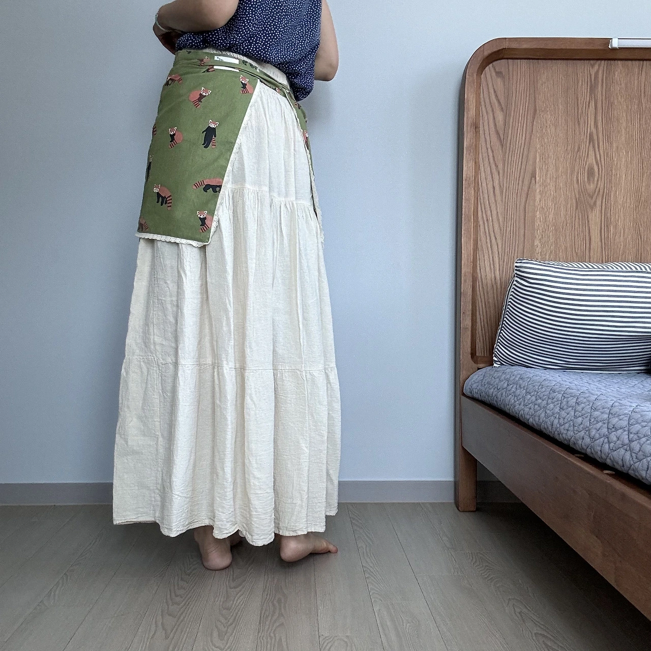 단색 치마나 통바지와도 매치해도 예쁘다. 이건 조카에게 다시 선물해야겠다. 큰 이모가 사준 가방이 쓸모를 바꿔 앞치마가 되어 다시 조카에게 선물이 된다면 좋겠다. 가방이 가지고 있는 추억도 그대로, 그리고 새로운 추억을 이 앞치마와 만들어 가길 바란다.