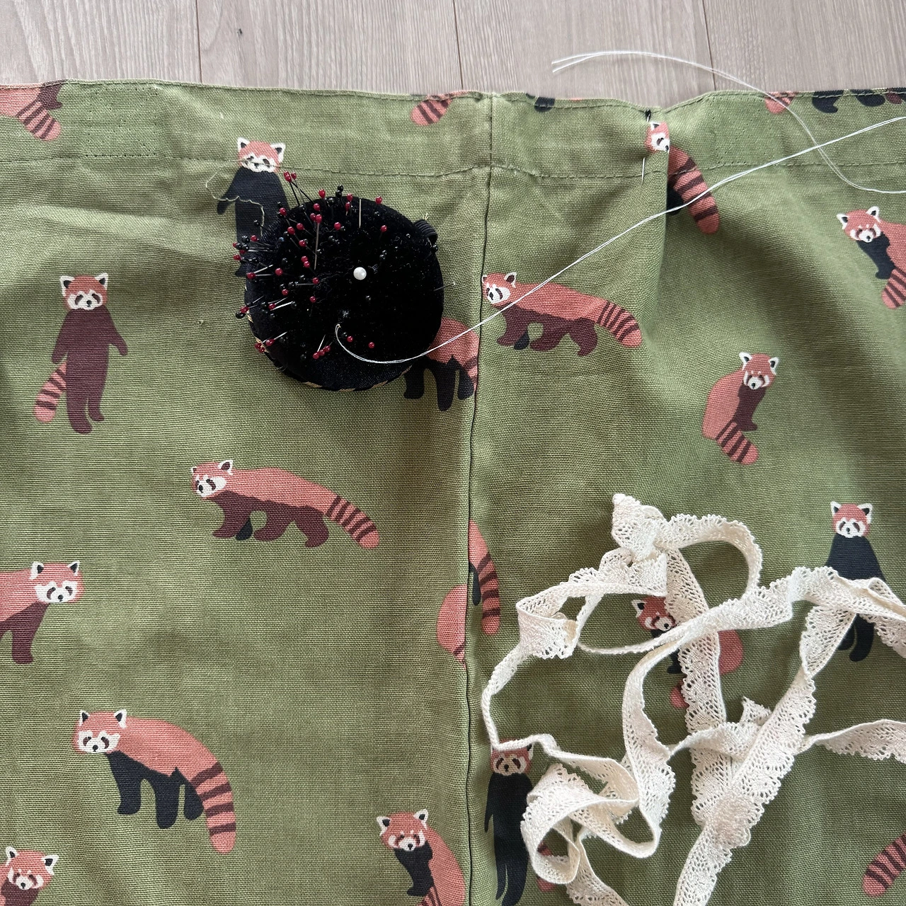 모서리에 레서판다의 귀여움을 배가시켜 줄 레이스를 달았다.