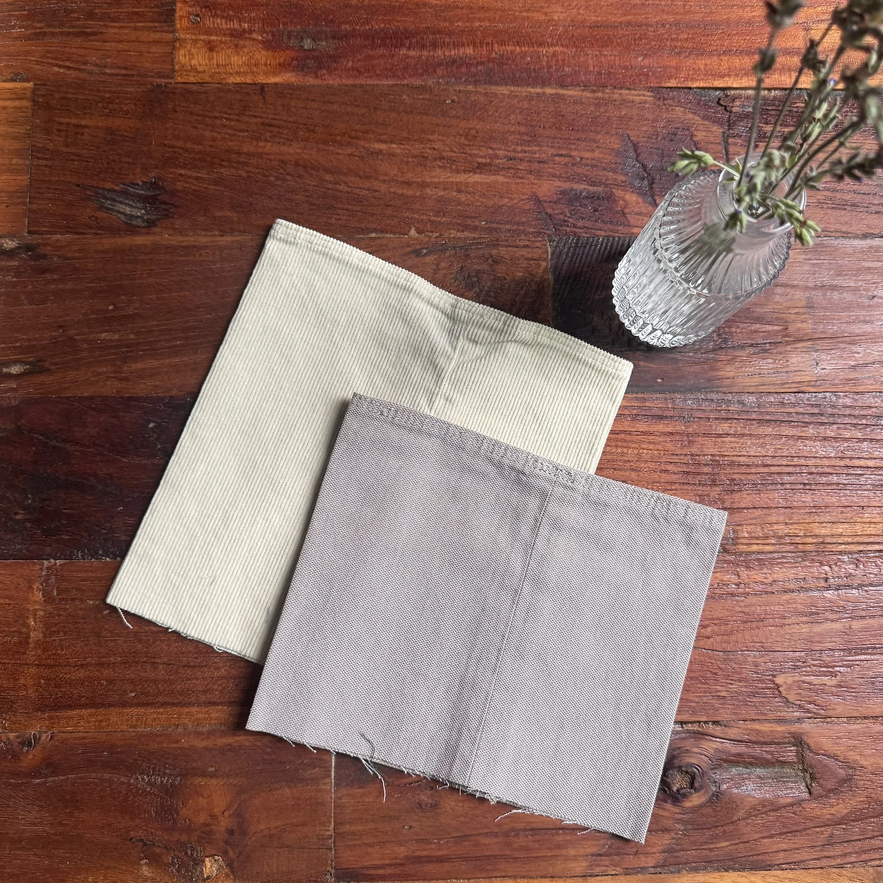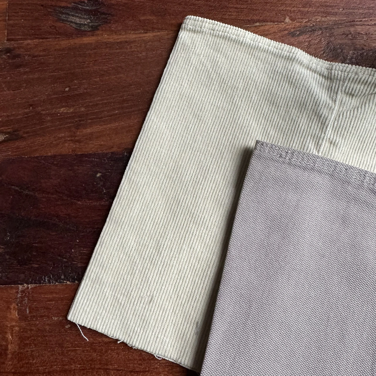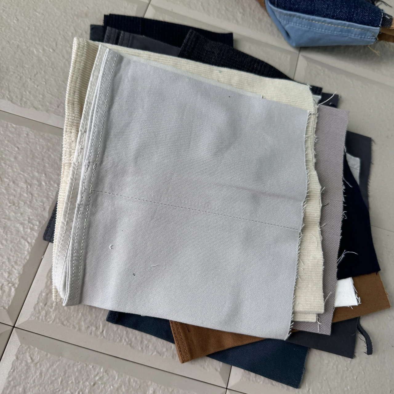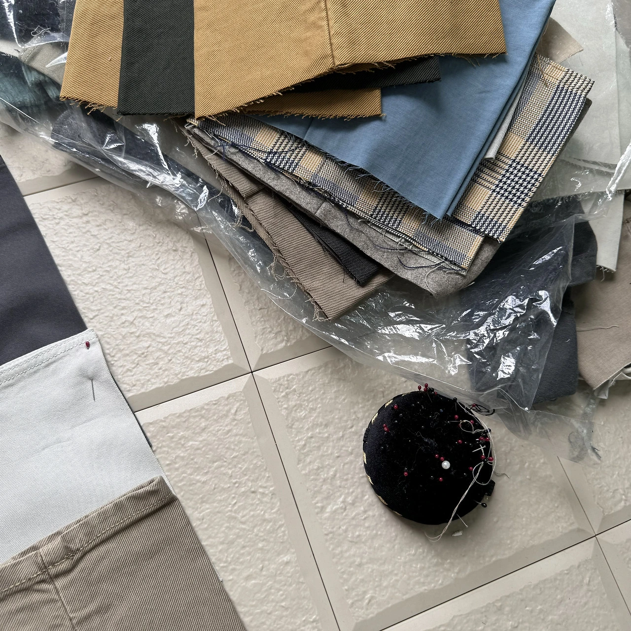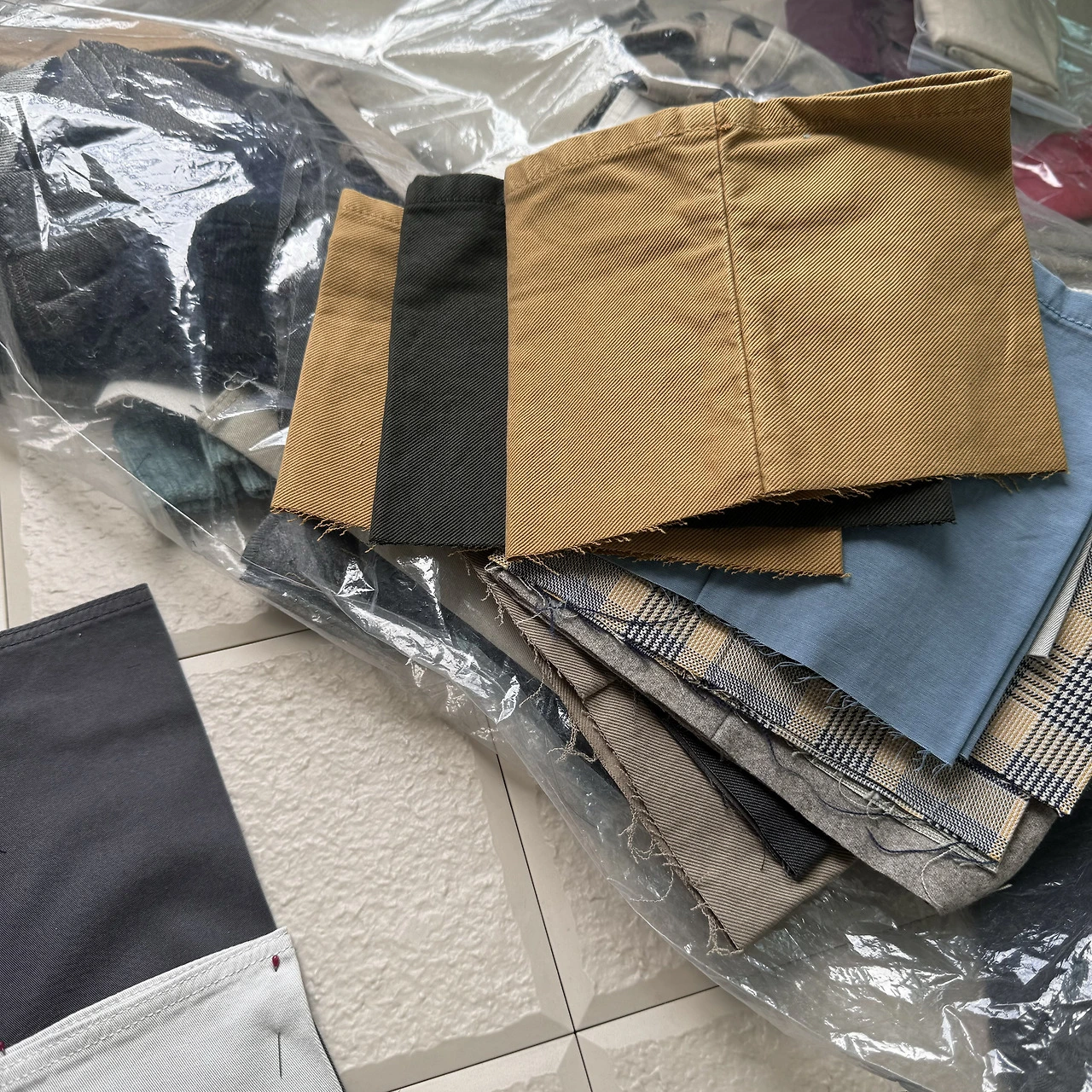 바지로 유명한 브랜드라서 그런지 바지단이 꽤 모였다. 남자바지의 경우, 길이 조절을 기본적으로 생각하고 바지의 길이를 길게 출시한다. 그래서 대부분의 바지 구매자들은 길이를 수선한다. 이 브랜드는 수선을 기본으로 제공한다. 수선하고 남은 바지단들을 모아 달라고 부탁해서 받아 온다.