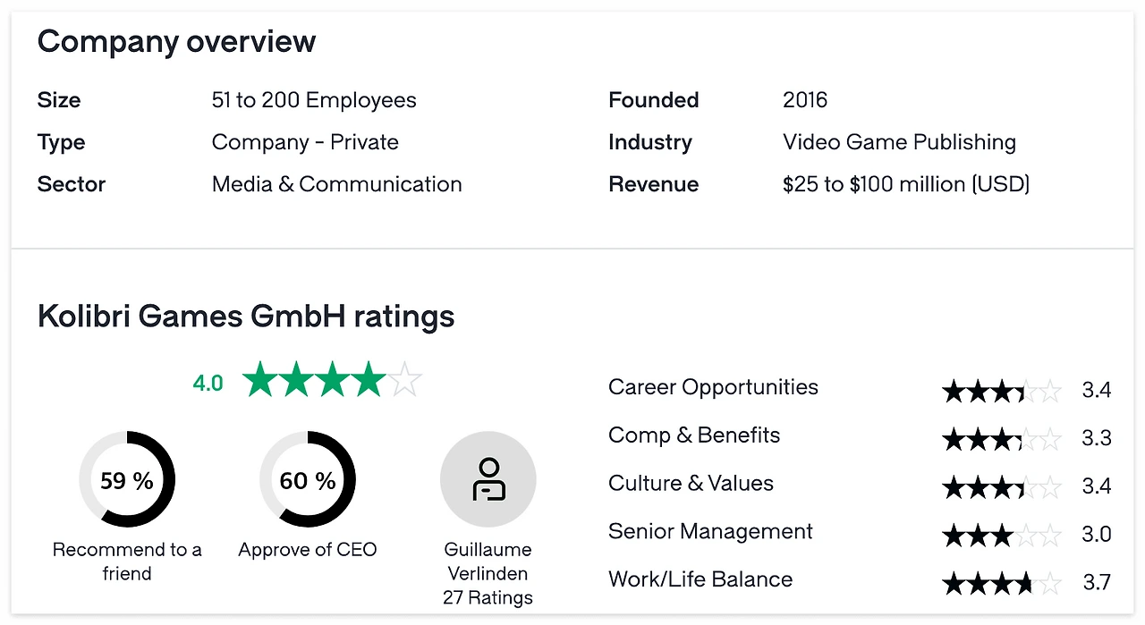 Glassdoor의 Company rate를 먼저 살펴보면 아래와 같다. 우선 평점은 5점 만점에 4.0으로 높고, 직원 수도 200명 이하에 설립한 날도 2016년이라 나름 오래된 회사여서 맘에 들었다.