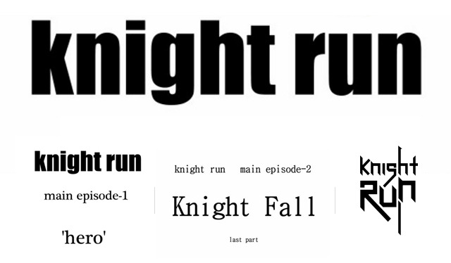 2. 나이트런은 메인 에피소드와 외전이 번갈아가면서 진행이 되고 있는데 현재 로고 및 에피소드 정보 입력 방식은 규정화 되어있지 않습니다. 이 때문에 처음 보는 사람들은 어느 것이 제목이고, 에피소드 제목인지 , 메인 에피소드인지, 외전인지 파악하는데 어려움을 줍니다. 그리고 사용되는 폰트도 에피소드마다 달라서 일관된 브랜드 경험을 제공하는데 방해가 됩니다.