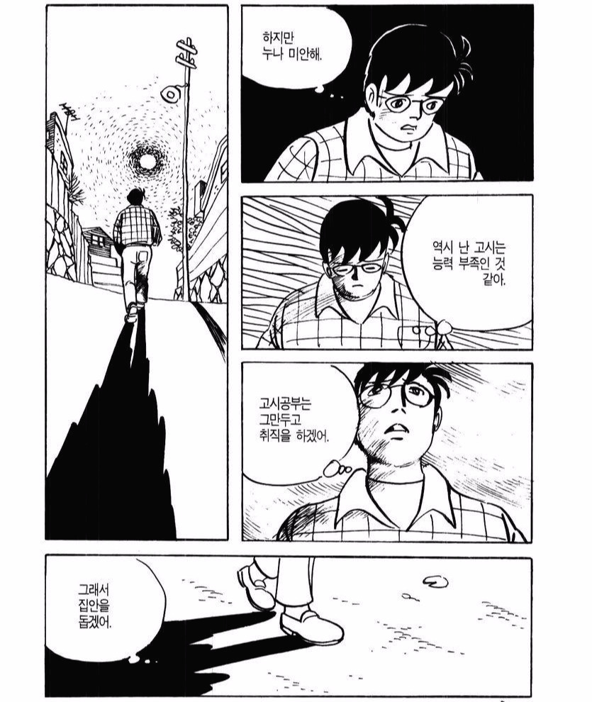 난 아직도 내 그림을 보면 부끄러워요. 너무 못 그린 것 같아서...근데 또 생각해보면 아직도 언제든 발전할 수 있는 가능성이 있다는 예기거든. (이상무 선생님).