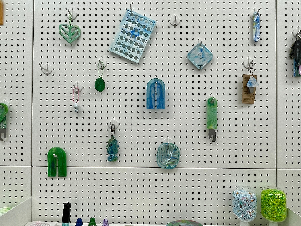 프레셔스 플라스틱의 국내 지부인 그린 워커스답게 팝업스토어에서도 프레셔스 플라스틱 기법으로 만드는 크리스마스 키링도 이색적입니다! 팝업스토어를 방문하실 때 병뚜껑을 챙겨 가보세요. 우리가 수거한 병뚜껑들이 새로운 자원으로 활용됩니다.