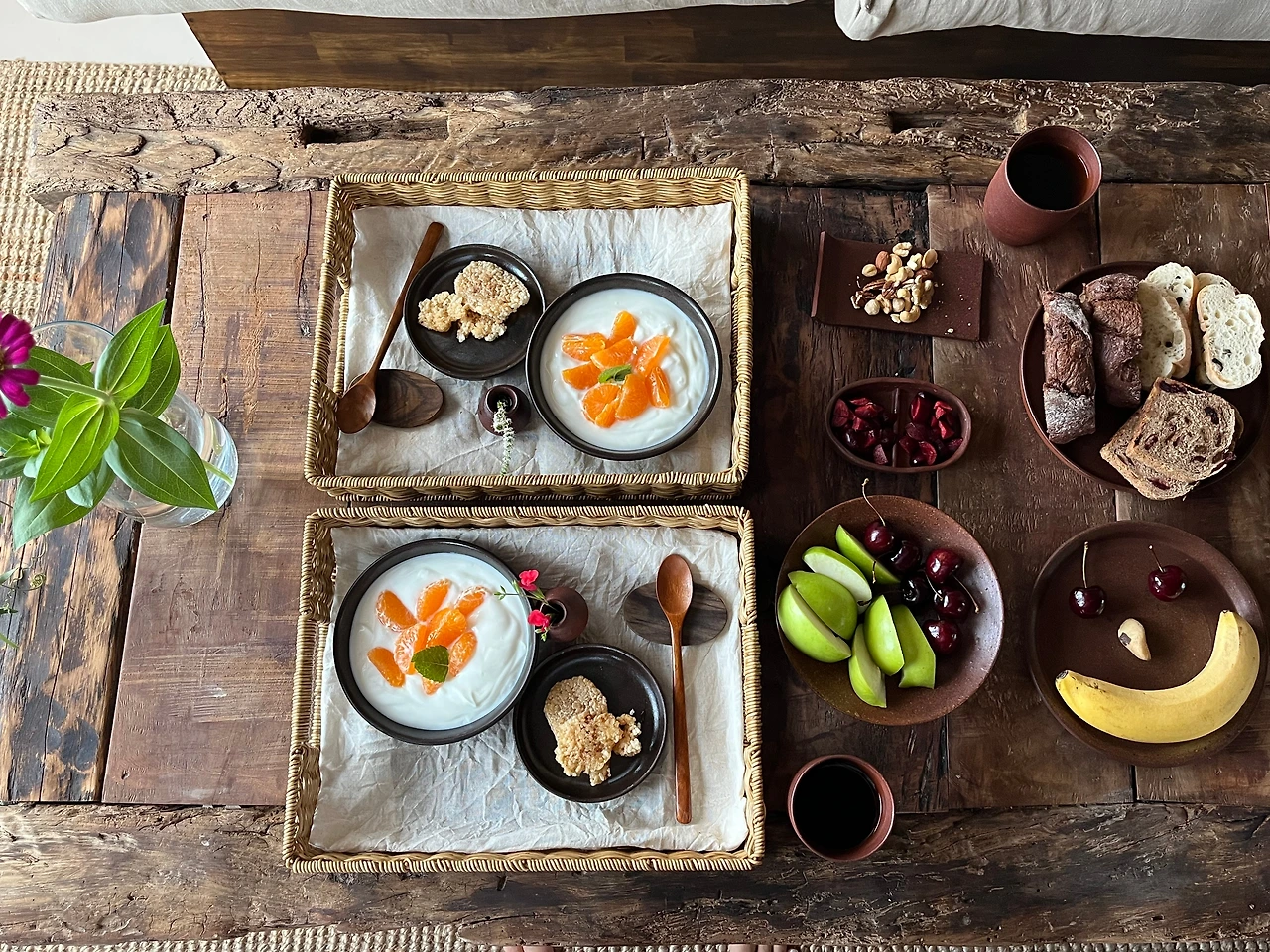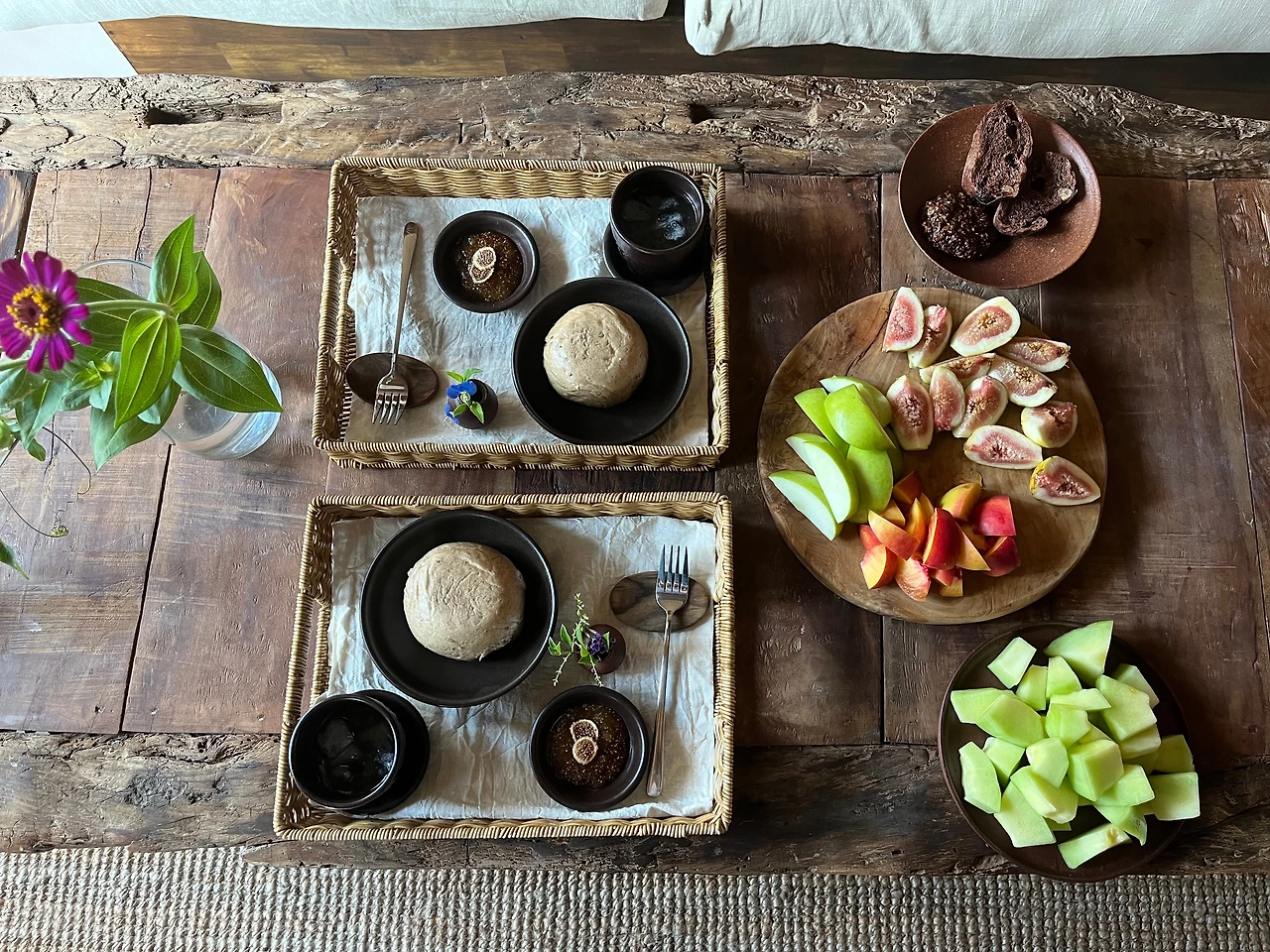 마지막 날 여섯 번째 식사, 조식은 제주 보리빵이었다. 따뜻한 빵과 어우러진 달콤한 무화과잼. (왜 보리빵을 사오지 않았을까) 사두었던 과일과 빵을 남김없이 먹었다. 이렇게 많이 먹어도 금방 소화가 됐다. 조리하지 않은 깨끗하고 신선한 재료를 건강하게 먹어서일까. 제주에서 먹은 여섯 끼 중 네 끼를 채식을 했다. 여행을 하면 몸이 무겁게 먹는 일이 많은데 가볍고 말끔했다.