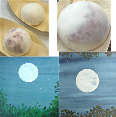 [위는 찹쌀떡, 아래는 내가 그린 달 그림]