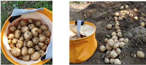 감자를 수확할 때는 호미질을 하다가 다치는 지렁이나 감자가 없도록 흙을 살살 다룬다.
