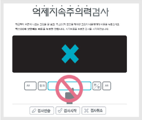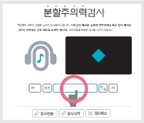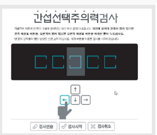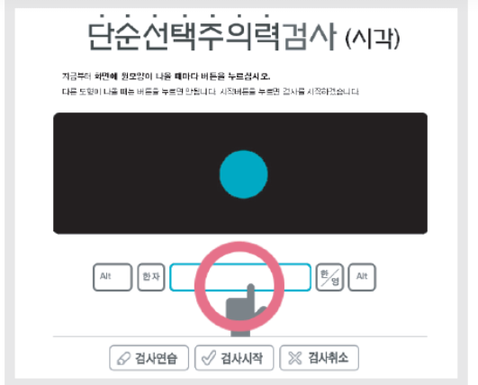 검사실에 들어가니 컴퓨터 한 대만 덩그러니 있었다. 그리고 검사가 시작되었다. 나는 눈을 부릅뜨고 뇌를 쫄깃하게 하고 내가 고도로 집중할 때 특유의 자세로 모니터에 레이저를 쏘며 전의를 불태웠다.