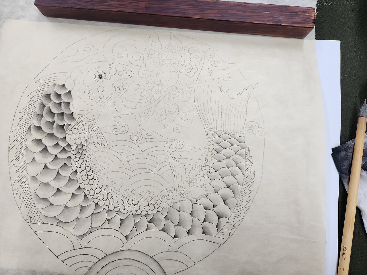 구속 피고인 접견을 갔는데 피고인이 가슴을 풀어헤치듯 수용복 단추를 열어놓았는데 그 사이로 목부터 이어지는 비늘과 꼬리 같은 것이 보였다. 거대한 잉어였다.