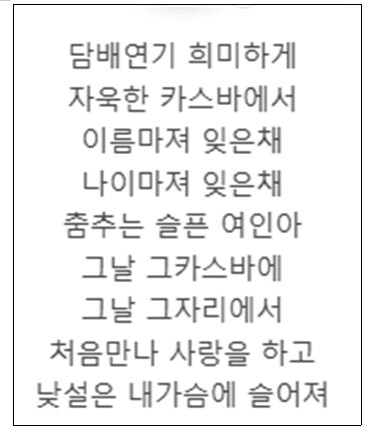 그런데. 아름다운 목소리의 발라드와 절절한 음악 속에서 가사가 들려왔다.