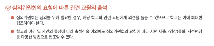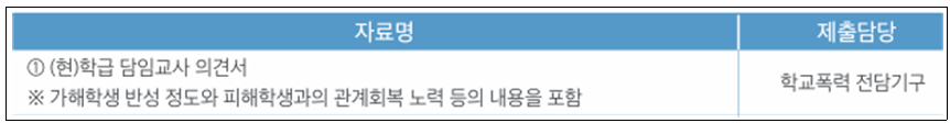 학교 폭력 절차에서 교사의 역할은 이뿐만이 아니다. 교사가 제출한 의견서와 자료가 심의 결과에 영향을 줄 수 있다.