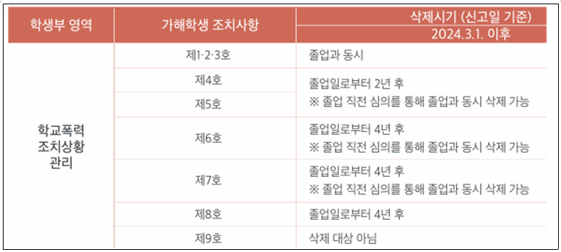 위와 같이 가해학생에 대한 처분은 삭제할 수 있는 경우가 있는데, 여기에도 교사의 의견이 중요하다.
