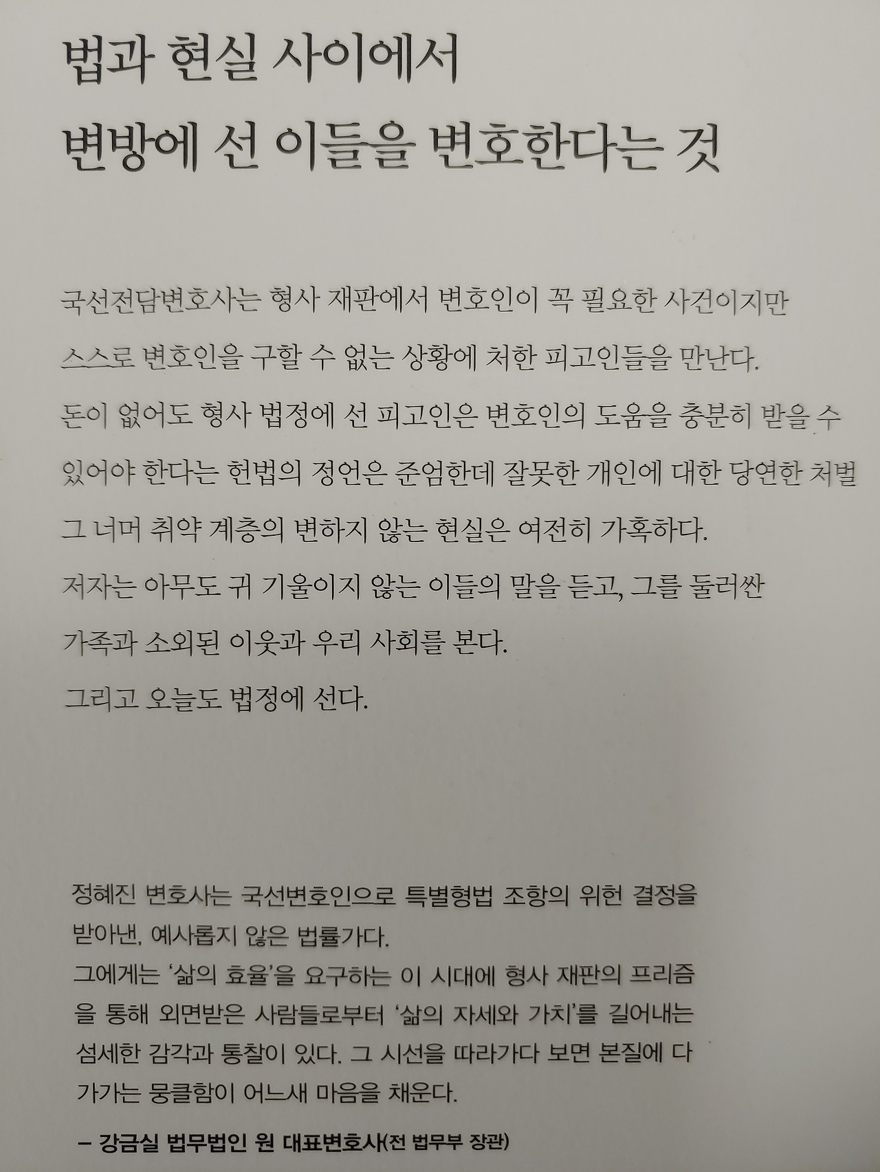(심지어 영화 ‘7번 방의 선물’에서는 국선 변호인이 피고인을 형장의 이슬로 사라지게 함)