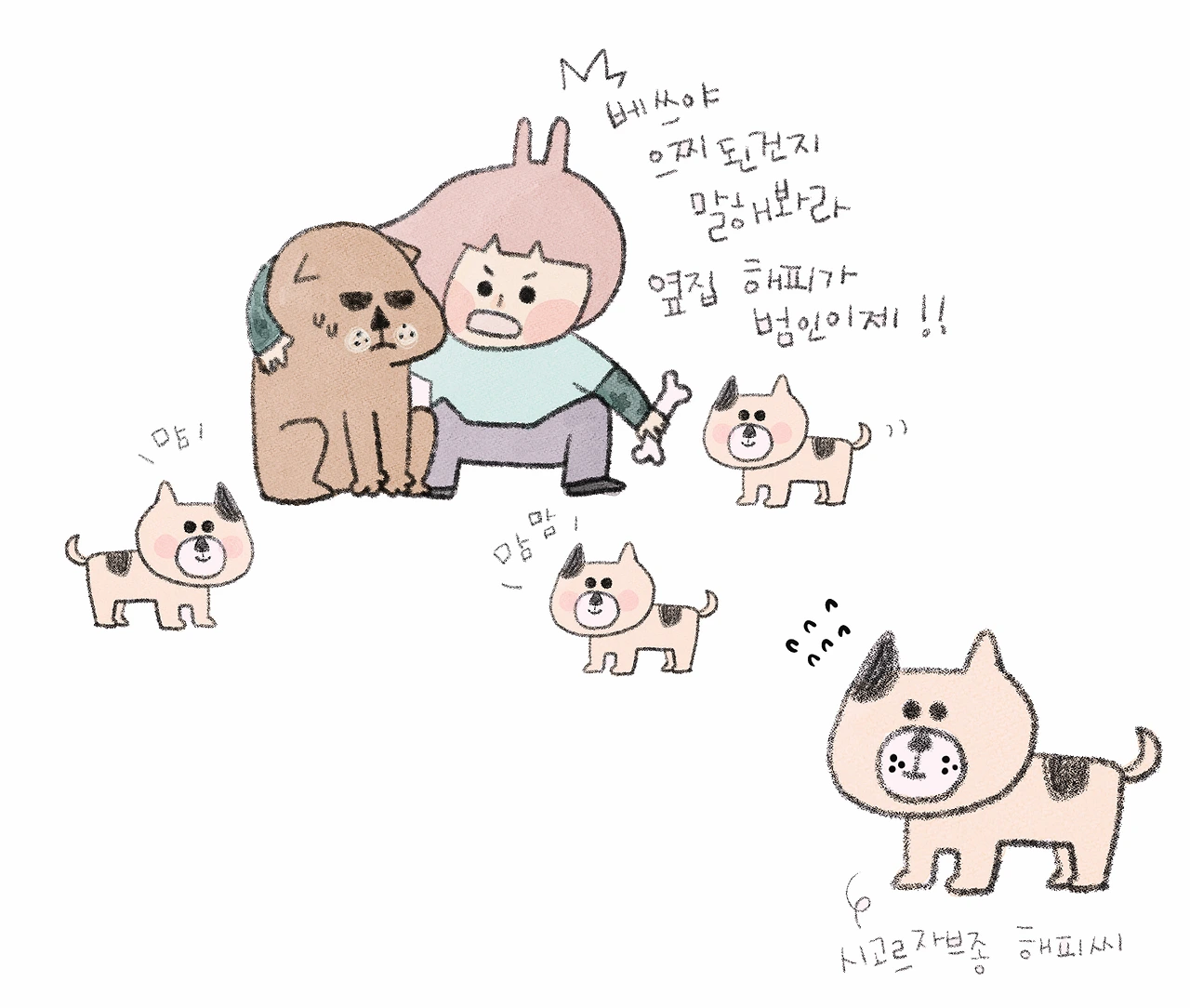 집에서는 베스라는 영어 이름의 진돗개를 키웠다. 할머니는 베스가 사람으로 태어났으면 미스코리아가 되었을 거라고 했다. 가족들은 베스를 족보 있는 개라며 자랑을 하고 다녔는데, 녀석이 낳은 새끼들은 모두 잡종으로 태어났다. 나는 그중에서 찰떡을 닮은, 뽀얗고 동글한 막내가 제일 좋았다. 할머니 몰래 이불속에서 놀기도 하고, 친구들에게 데려가 손을 타게 하기도 했다. 학교에서 돌아올 때면 짧은 꼬리를 흔들며 깡총대던 막내인데, 그날은 몸을 축 늘어트리고 잠시 나를 보고는 고개를 떨구었다. 수의사 선생님은 한참 이갈이를 할 때라 무언가 잘 못 먹은 것 같다고 말했다. 막내는 지어온 약을 다 먹기도 전에 숨을 거두었다.