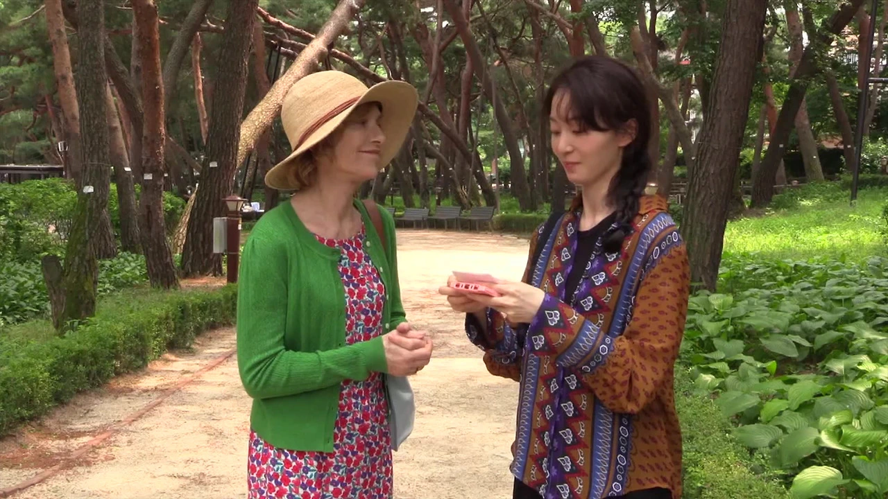 나는 <여행자의 필요>에서 그 '필요'가 무엇을 의미하는지 고민해 보았지만 답이 나오지 않았고 영화를 보는 동안에, 그것이 영화에 관해서는 중요하지 않다는 생각에 도달했다. 홍상수는 내가 그런 생각에 도달하게끔 도와주었다. 오히려 그런 퍼즐보다 중요한 것들이 눈에 보였다. 이자벨 위페르가 정말 오래간만에, <다른나라에서> 이후로 오랜 시간에 지나서 한국에 와서 영화를 찍었다는 것. 그리고 <소설가의 영화>나 <탑>과는 달리, 홍상수가 흑백 모노크롬이 아닌 컬러를 선택했다는 것. 마지막으로, 이자벨 위페르의 단독 숏이 영화 속에서 자주 보인다는 것. 이런 세부적이고 겉보기에 중요하지 않은 요소들이 가리키고 있는 단 하나의 사실을 보려고 했다. (그냥 자연스럽게 눈에 들어왔다, 라고 말하는 게 정확한 표현일지도 모르겠다) 그러자 답이 나왔다. 이자벨 위페르에게 선물을 주기 위해서, 한국에서 그녀가 존재하고 움직이는 풍경을 담기 위해서 홍상수는 이 영화를 찍었을 것이다. 제목의 여행자는 다른 누구도 아니고, 영화 바깥에서 영화 내부로 자발적으로 들어온 여배우, 이자벨 위페르에 다름이 아니었다. 그리고 영화를 본 우리는 이자벨 위페르가 무엇을 필요로 했는지를 누구보다 잘 알고 있다.