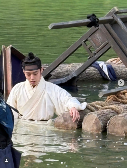 유배지를 향해 강을 건너다 뗏목이 부서져 모두가 강물에 빠진 혼란의 순간, 이홍위는 허리 춤까지 찬 물 속에 서서 처연하게 강을 내려다 본다.